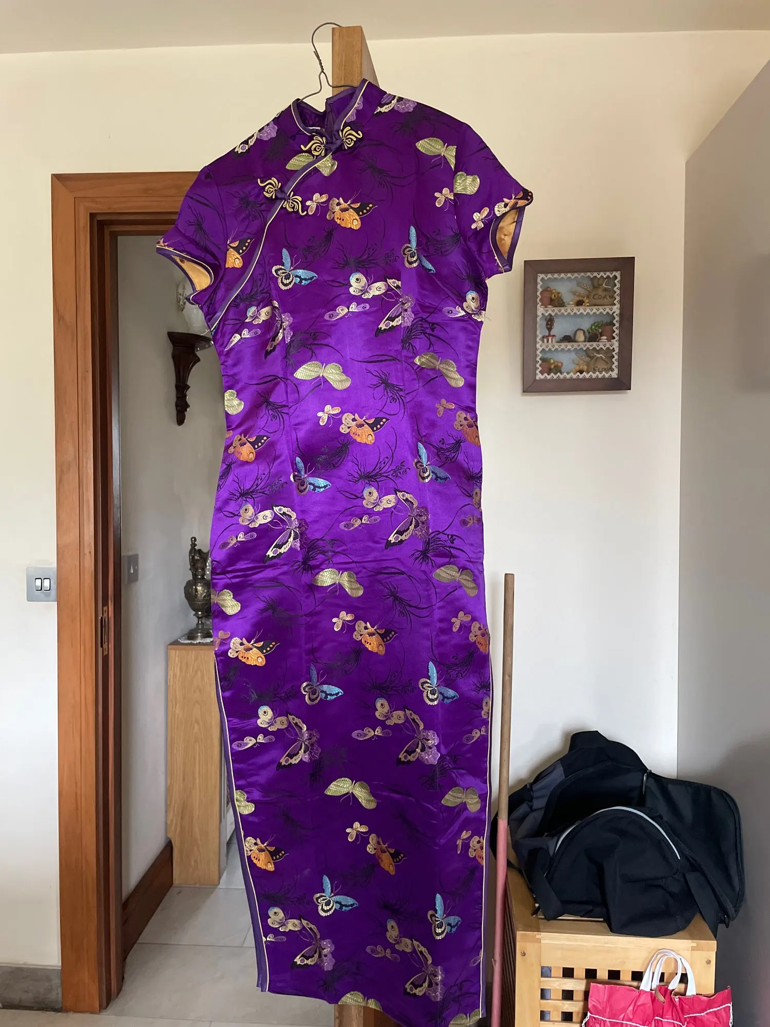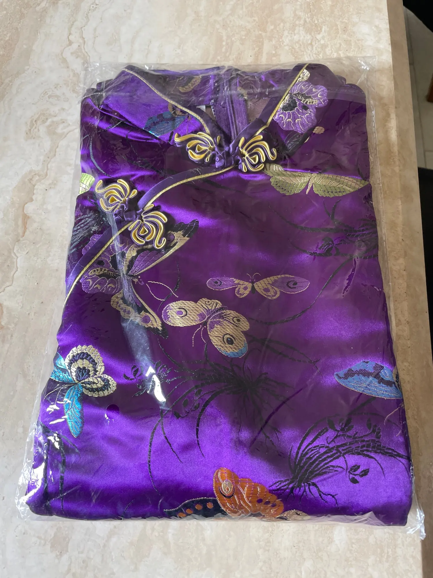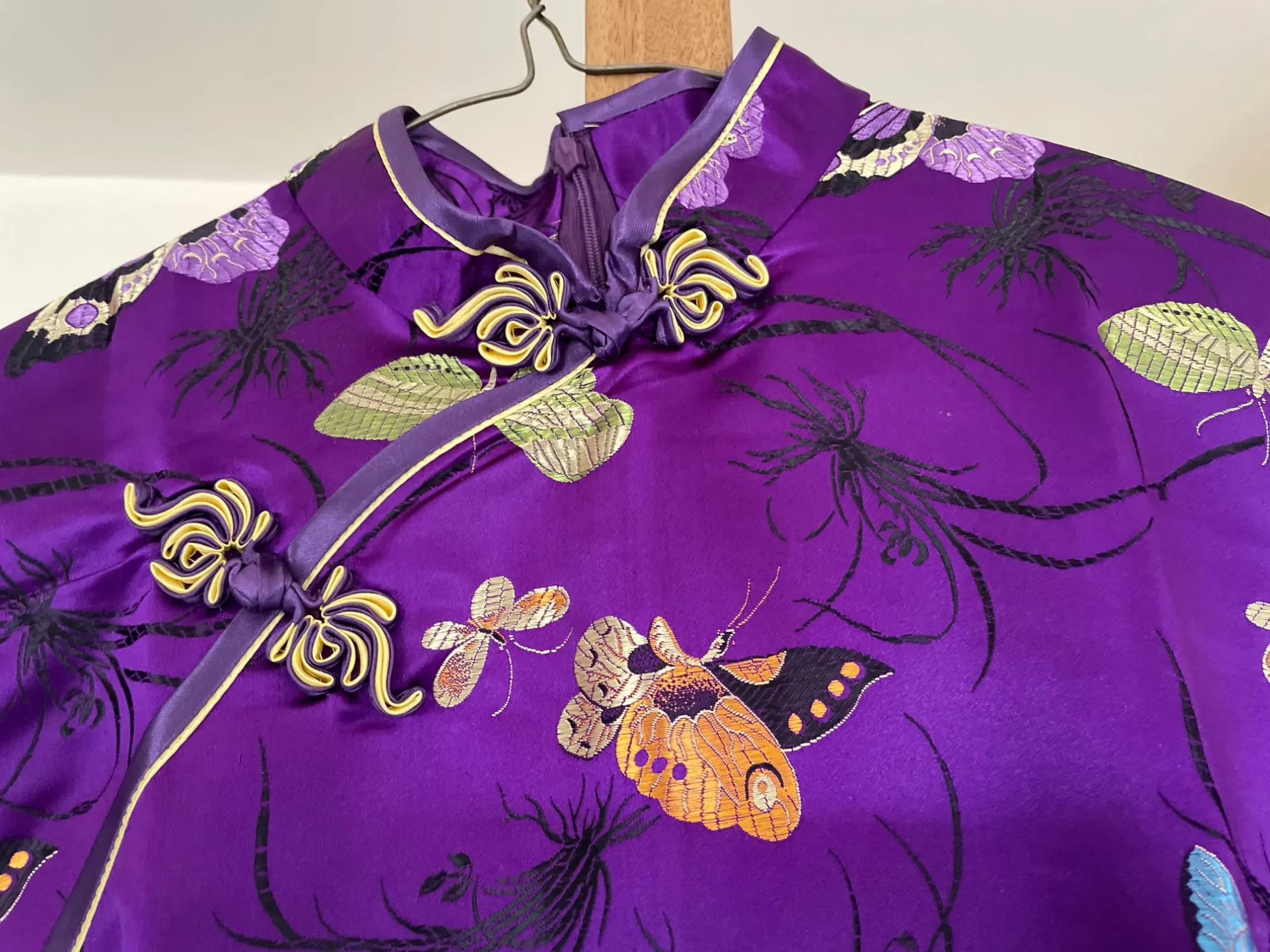 Красивое китайское платье, с ошибкой презентации с точки зрения цвета, глубоким фиолетовым на фотографии и темно-Бордовым гранатом на самом деле, но очень красивые бабочки, смесь материалов, красивый эффект. Клэр жуосци.