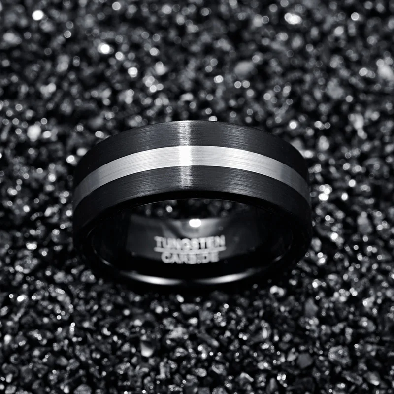 Кольцо из карбида вольфрама, ширина 8 мм, черный + серебристый цвет, матовая поверхность, мужское кольцо из вольфрамовой стали 2020