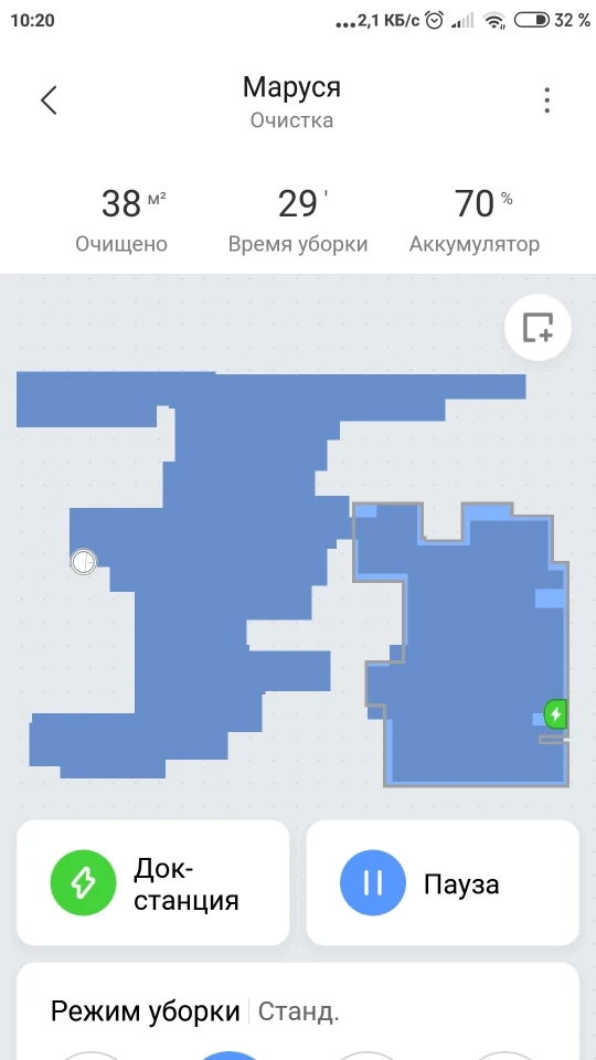Пылесос пришёл за 4 дня. Полностью совпадает с описанием. Евро-вилка с переходником. Смартфон не видел пылесос, пришлось выбирать регион Китай. Разговаривает либо на английском, либо на китайском. Строит карту помещения, при приближении к препятствию притормаживает, чтобы не врезаться. Качеством сухой и влажной уборки очень довольна. Маловат аккумулятор. На 124 кв.м. на одну уборку не хватает.