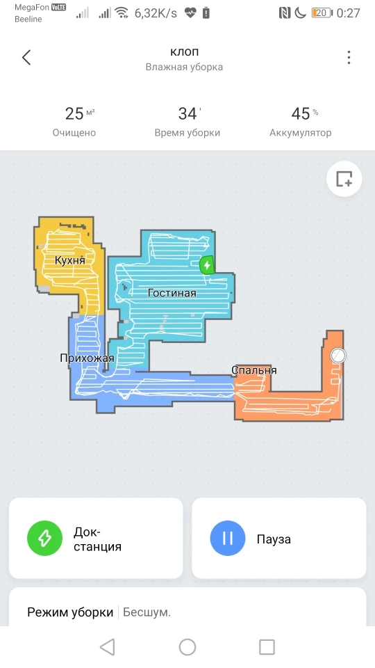 ✔️ Продавец отправил заказ в течении суток с момента подачи заявки. Робот доставлялся 5 дней Почтой России. На удивление, пришел без повреждений в полной комплектации. ✔️ Про первый запуск. Установила прилжение. Сразу выбрала страну Россию. Пока осуществлялась привязка к wi-fi робот беседовал со мной на китайском. С телефоном сопряжение прошло быстро, с Wi-Fi были какие-то думы. С чем связано не знаю, но потом просто взял и подключился, раза с 10ого. Сразу предложил обновление, после чего появилась возможность беседовать на русском. ✔️ Уборка. Сначала он проходит середину, вдоль плинтусов не собирает. Если увидел препятствие (сын стоял), то на обратном пути проходится в том месте где оно было. Нашел дорогу в спальне под кроватью и вышел с другой ее стороны (думала туда его придется ручками нести, так как между кроватью и стеной узковато, а внутри кровать разделена вдрль сплошной перегородкой, но он пробрался.) После того как обошел все комнаты, хаотично начал мести вдоль плинтусов.