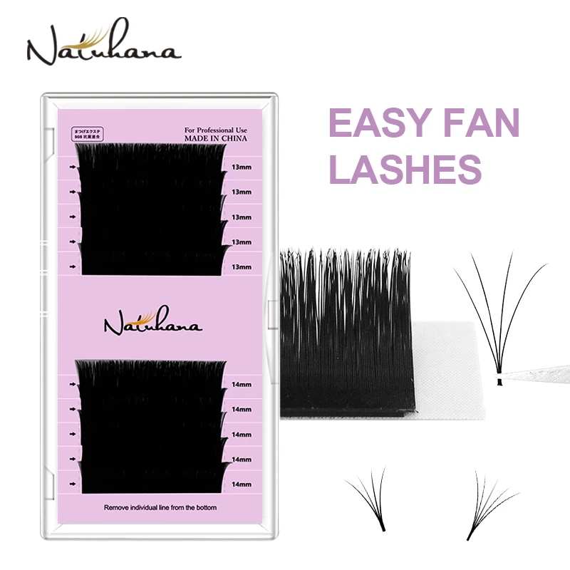 Ресницы для наращивания NATUHANA Auto Fan Cilios, объемные натуральные ресницы камелии, легко загораются