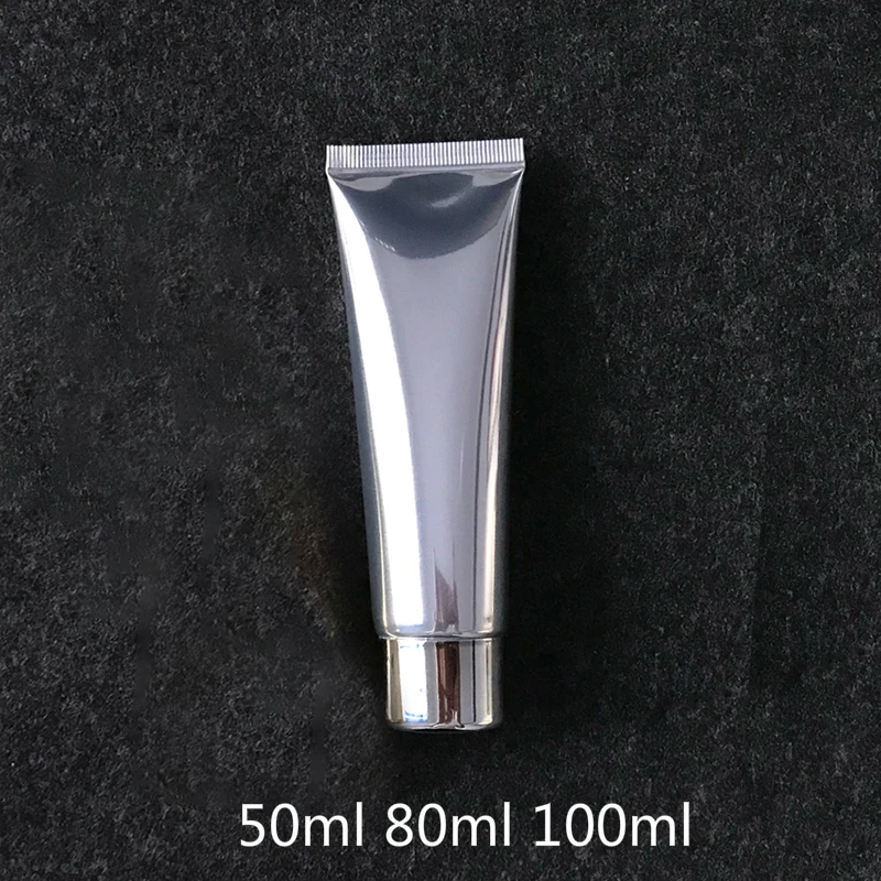 Алюминиевая пластиковая Серебристая мягкая бутылка для крема для ухода за кожей, 50 мл, 80 мл, 100 мл, Мерцающая трубка, контейнер для упаковки, бесплатная доставка