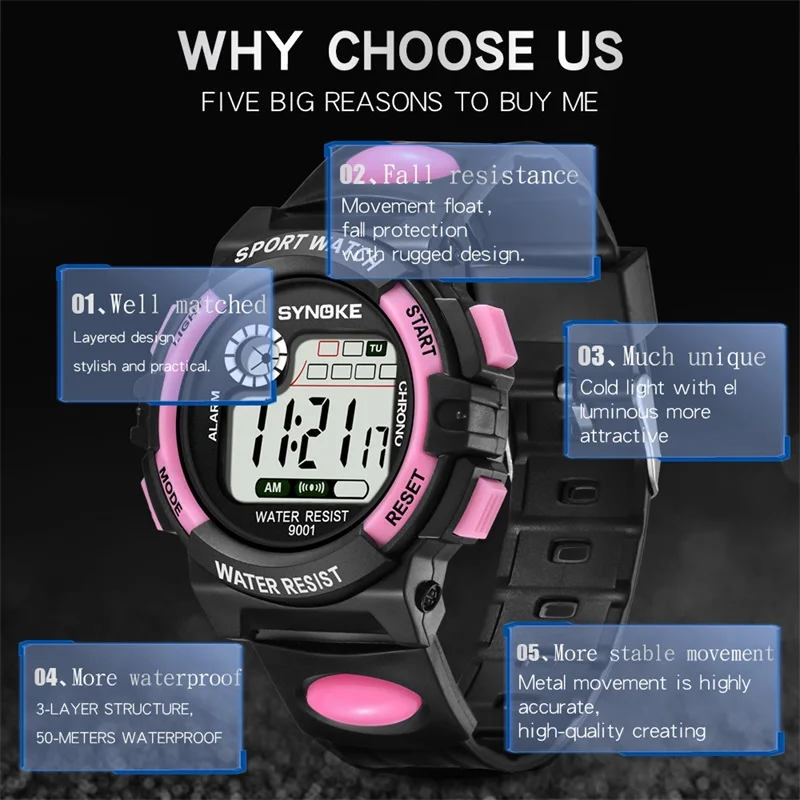 Детские часы SYNOKE для мальчиков, часы для детей, яркие часы с индикацией даты и недели, цифровые наручные часы для девочек и студентов