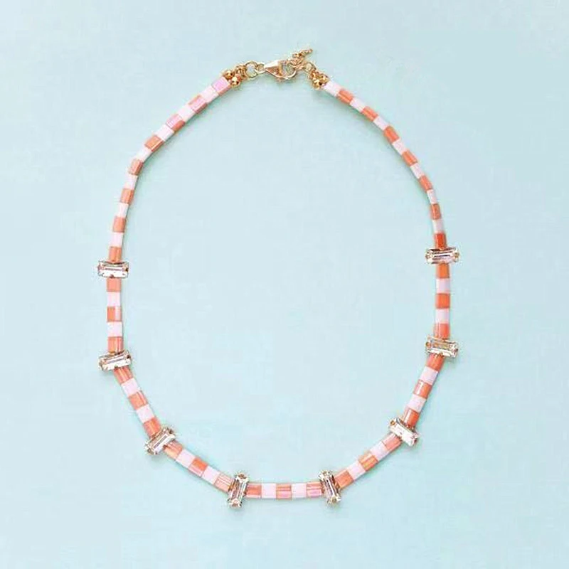 Новое японское ожерелье из стеклянных бусин женское ожерелье квадратный цвет акриловое сверло богемное короткое ожерелье очаровательные эффектные ювелирные изделия 2019 винтажные