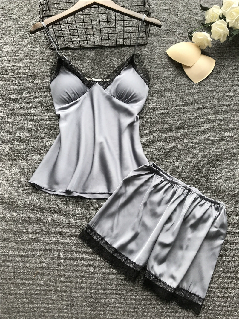 Женские пижамные комплекты, атласная Шелковая пижама из 4 предметов, кружевная Пижама для сна, пижама с нагрудными накладками, осень 2019