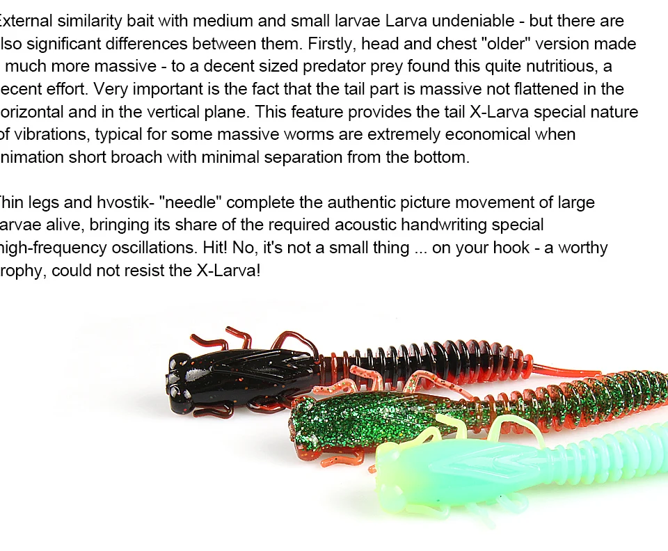 качество супер весь товар супер континент качественний силикон мягкий атрактант криветка. лутше чем ларва резина. доставка бистрая все ок буду покупать.