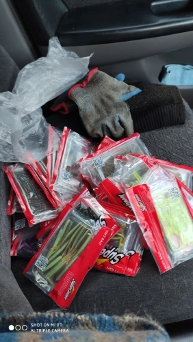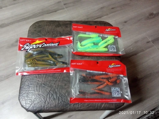 Пришло через 15 дней, очень быстро. Описанию соответствует, силикон мягкий и прочный, некоторые цвета чуть темнее, чем на фото, но не критично. Количество в пачках не считал, но вроде соответствует. Легкий запах рыбьего аттрактанта. Продавцу спасибо - оперативно, качественно, рекомендую.