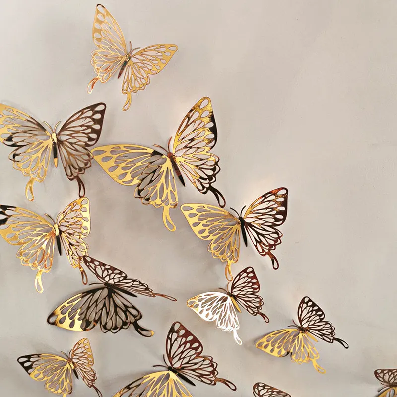 12 шт.лот 3d эффект кристалл бабочки стикер стены красивая бабочка для детской комнаты наклейки на стены украшения дома на стену