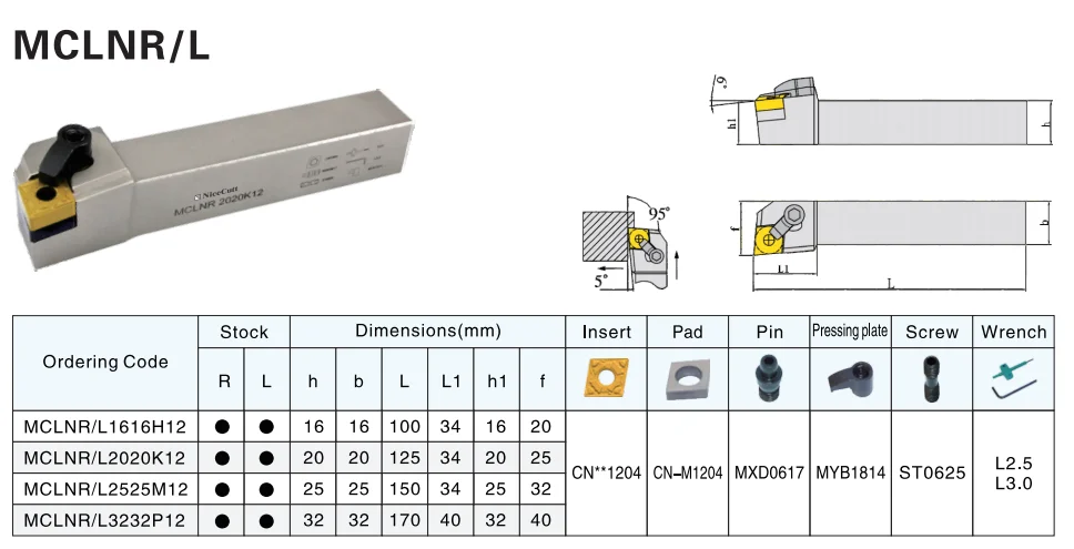 Держатель инструмента токарного станка Nicecutt MCLNRL161620202525 для токарного станка CNMG1204
