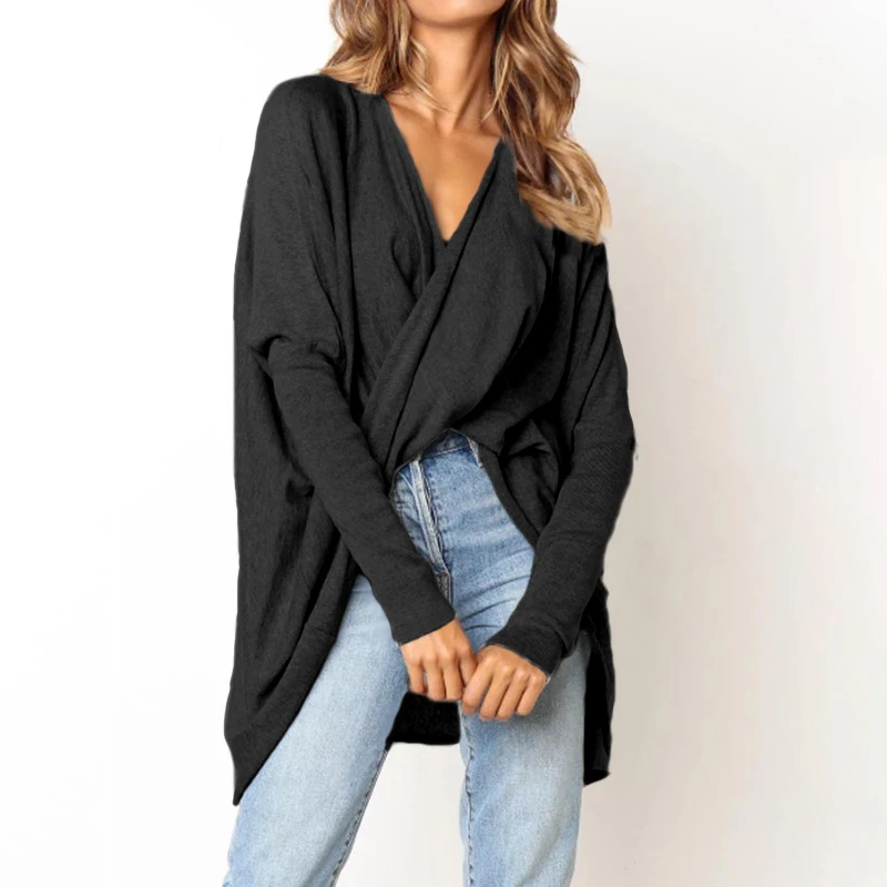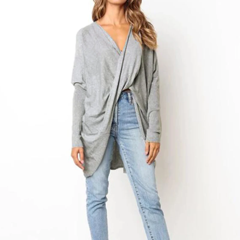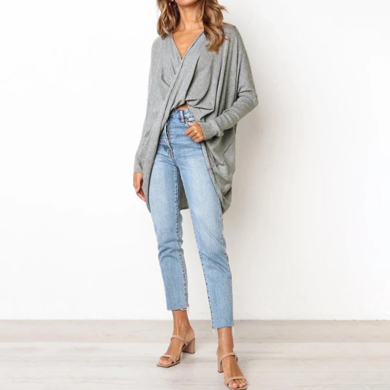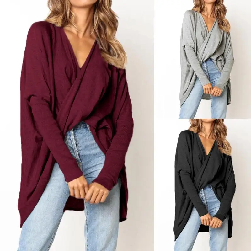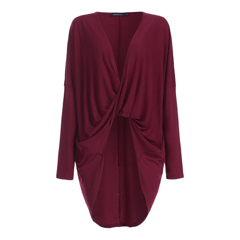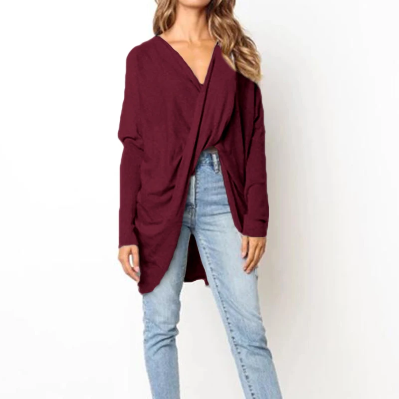 Женские блузки, топы, осенняя блуза с длинными рукавами Celmia 2021 модный вязаный свитер с длинным рукавом, блузка с V образным вырезом асимметричное Плиссированное блузки размера плюс