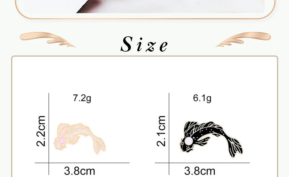 Брошь в виде кошки, черного кои, с эмалью, в форме золотой рыбки