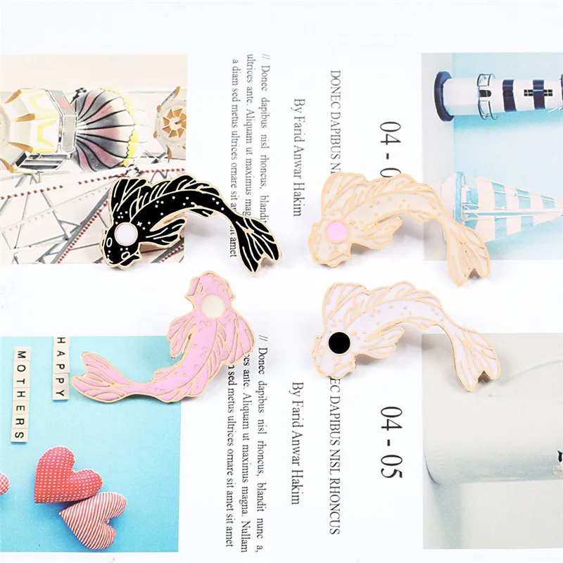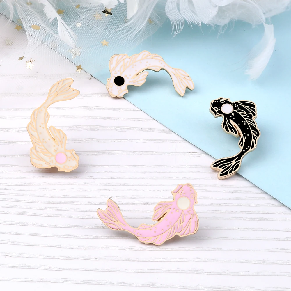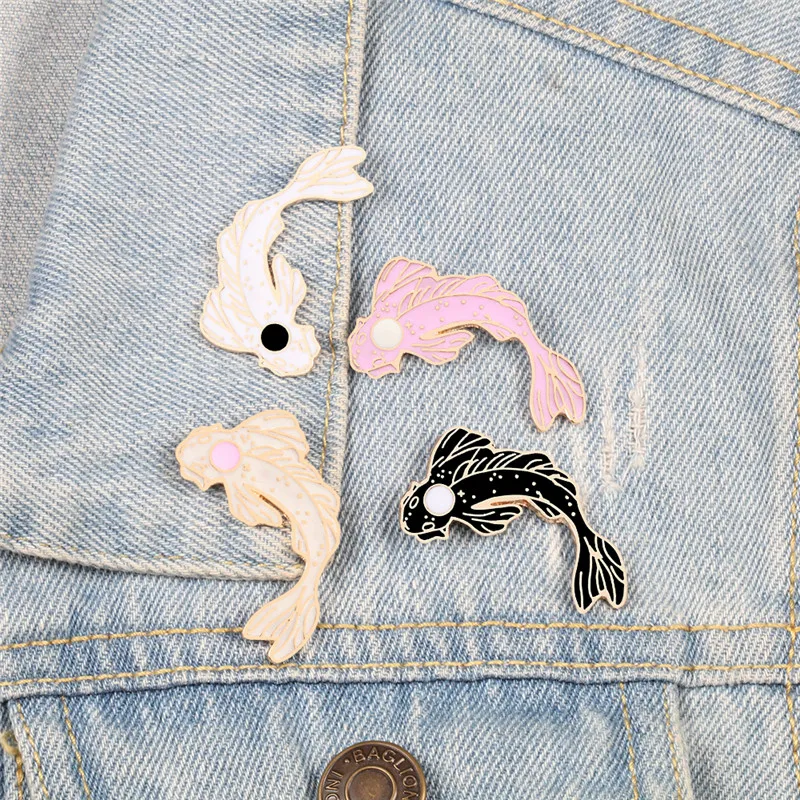 Эмалированные булавки Lucky Koi Fish, брошки Золотая рыбка, джинсовая шапка, рубашка, лацкан, булавка, металлические пуговицы, значки, ювелирные изделия, подарки для детей