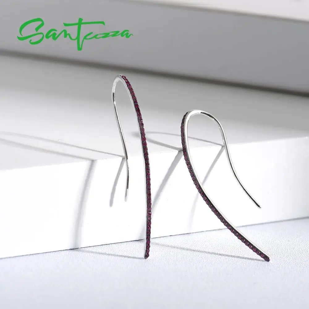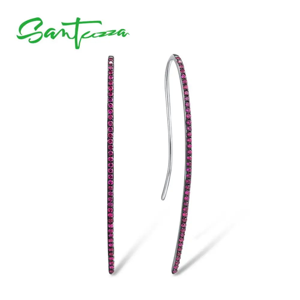 Женские серебряные серьги SANTUZZA, серьги с крючком из искусственного рубина, модные ювелирные украшения