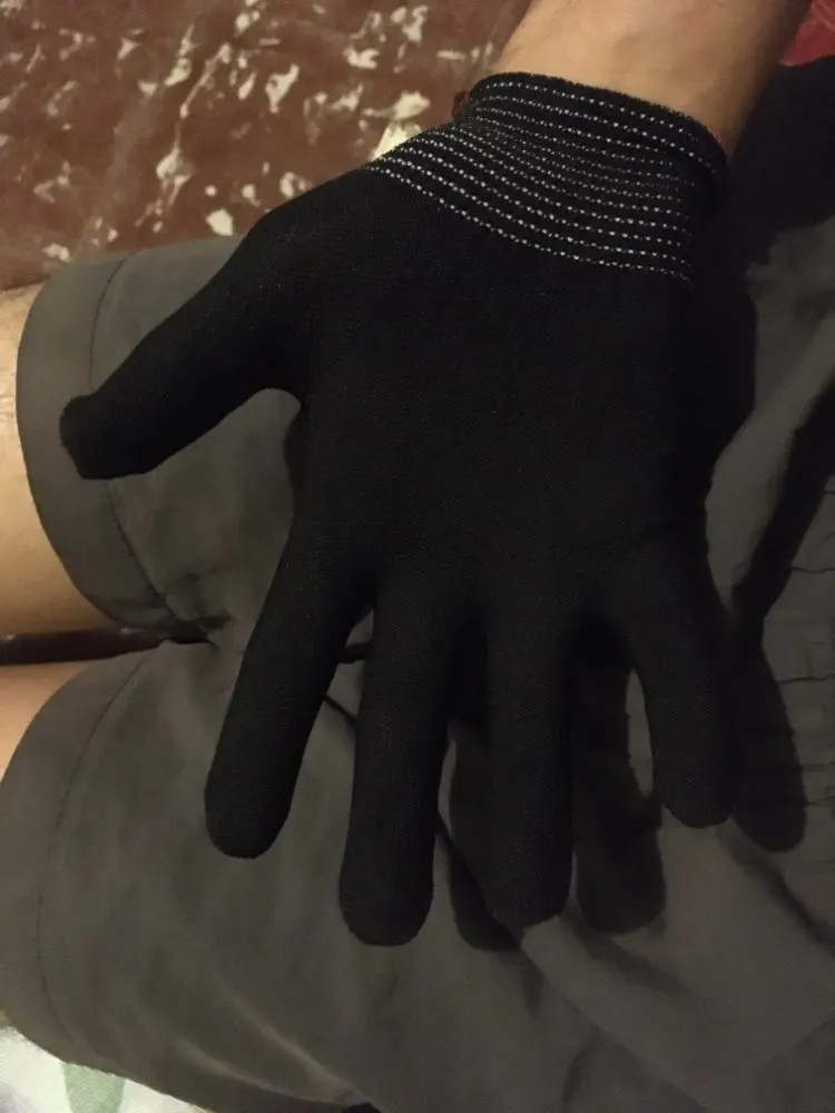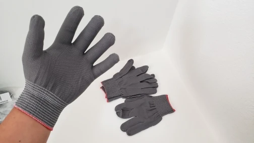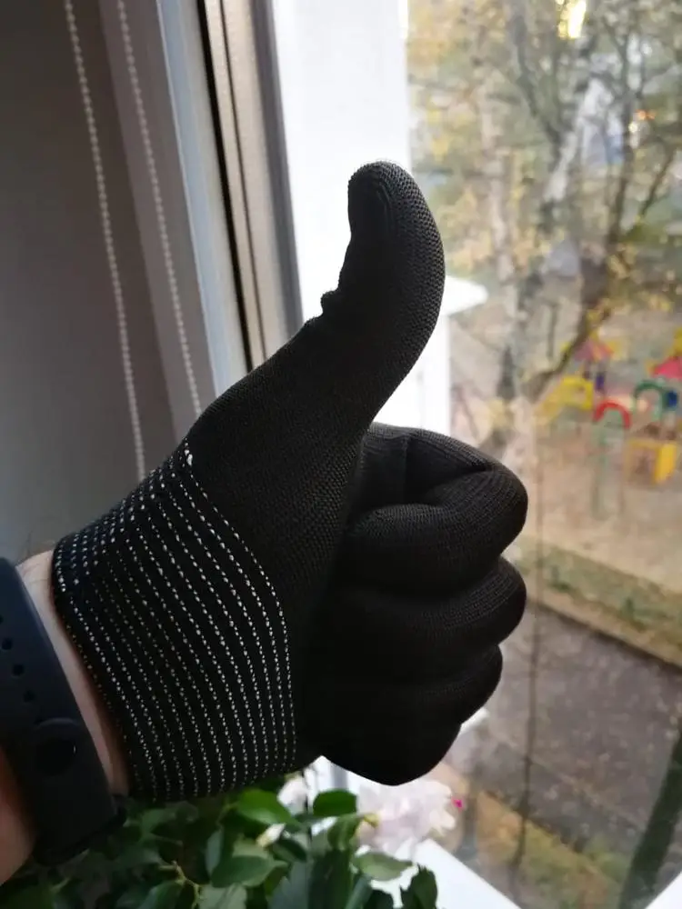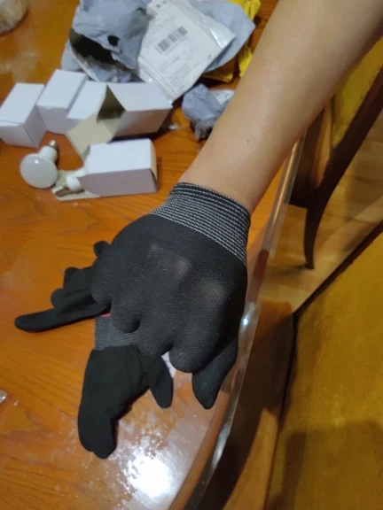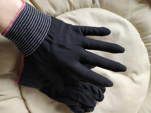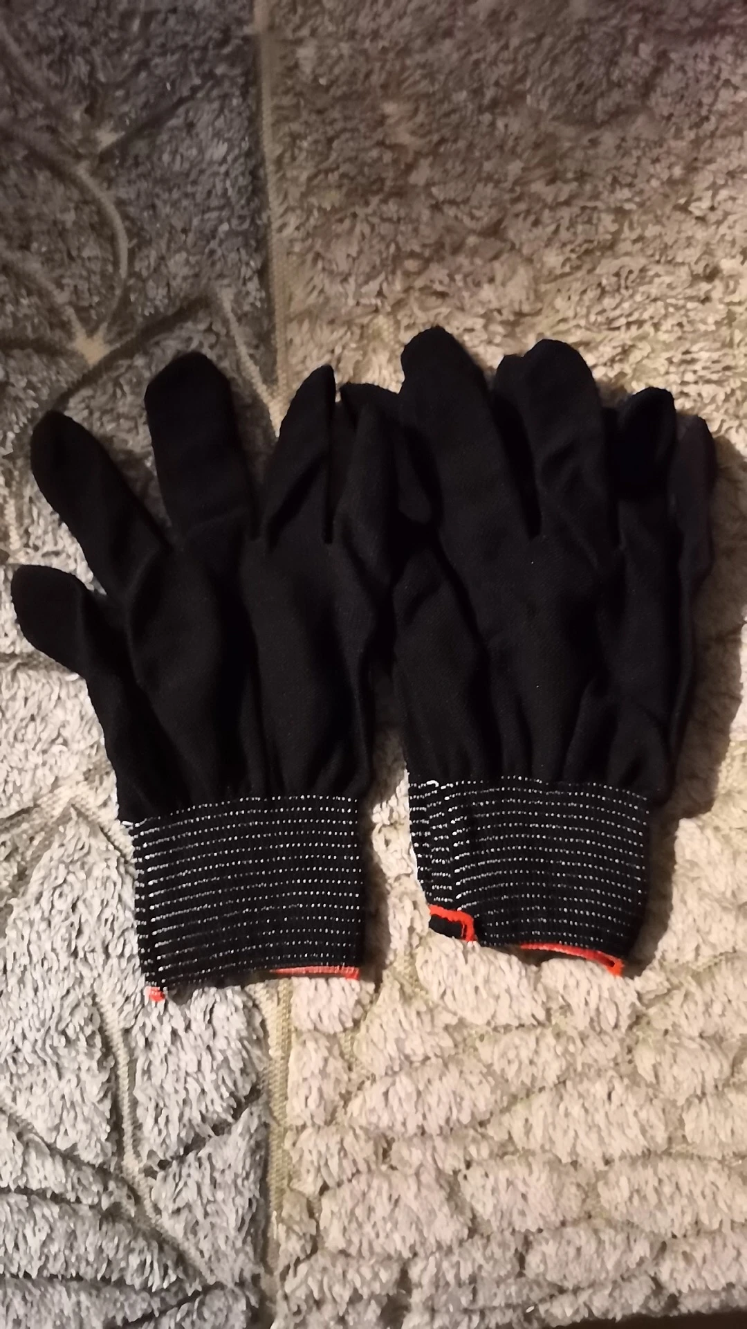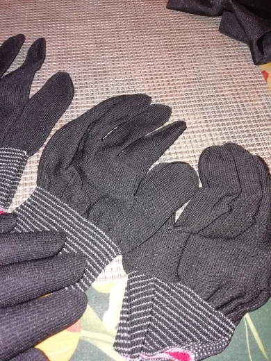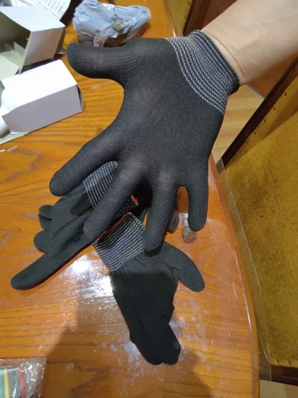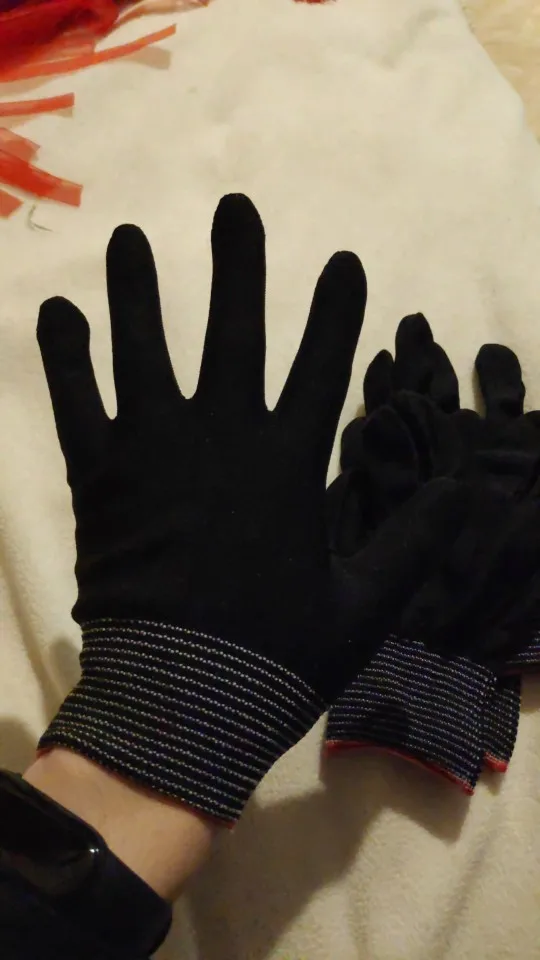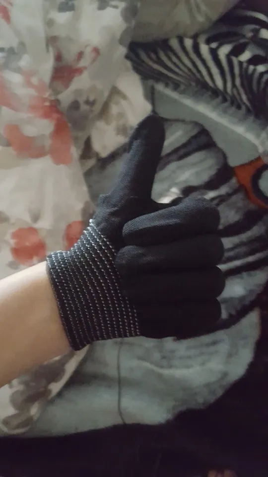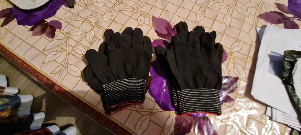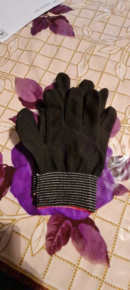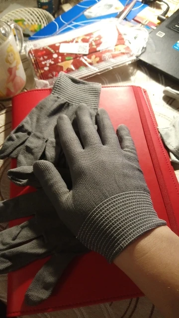 Перчатки из колготочного материала. Эластичные. Вещи из рук выскальзывают . Назначение непонятно. Грязь впитывают а соответственно руки тоже грязные . Может конечно и антистатические только для чего потомучто на руках не приятно. Новые уже с зацепками и дырками . Заказали две пары. Одни использовали ,,одели на полчаса и выбросили. Фотография второй пары ,, новые ))). Доставка быстрая, раньше срока но качество ужасное , назначения у этой вещи нет. Вторсырьё. Деньги выброшены. Хоть и недорого, до этого заказывали другие перчатки аналогичные по цене качество отличное, уплотнённые пальцы но беда в том что только белые, здесь думали аналог, но мимо, Спасибо говорить не за что