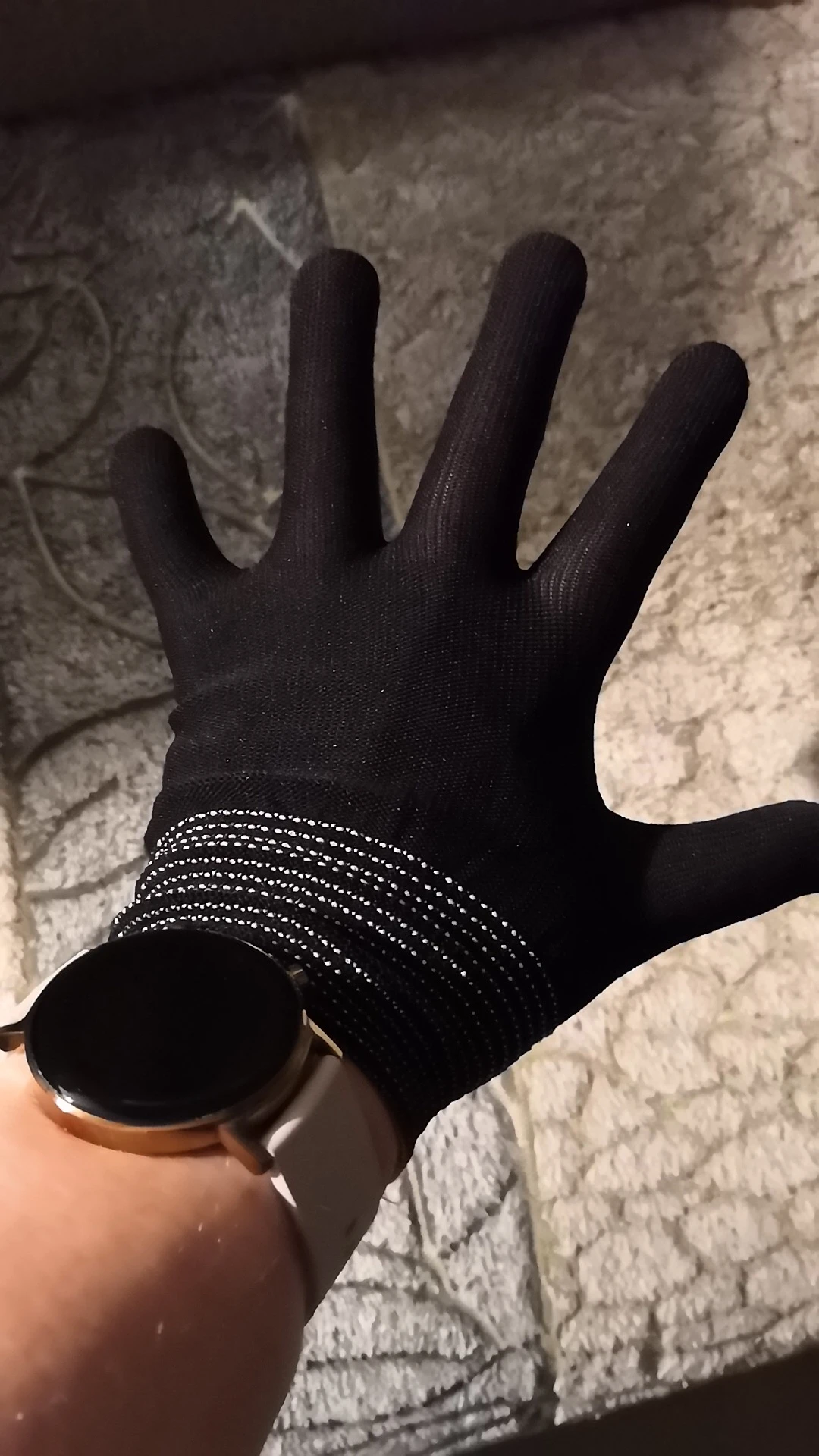 Перчатки на изящную женскую руку. Очень удобно в условиях пандемии. В них не жарко. После стирки быстро сохнут.