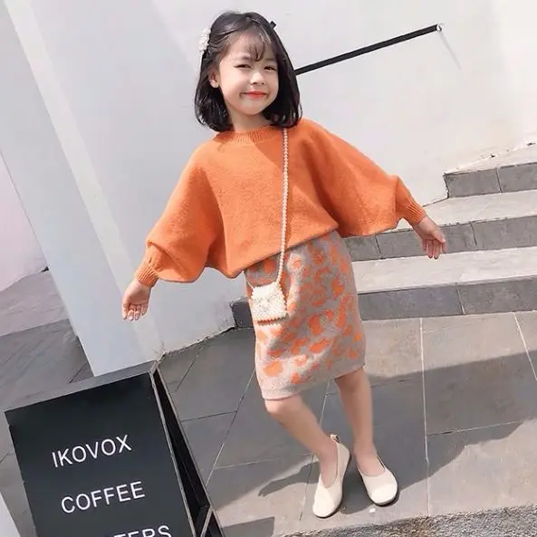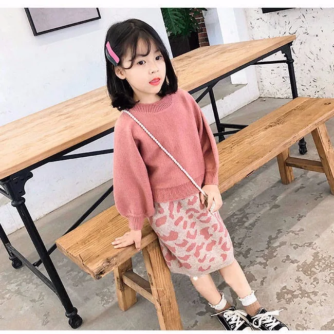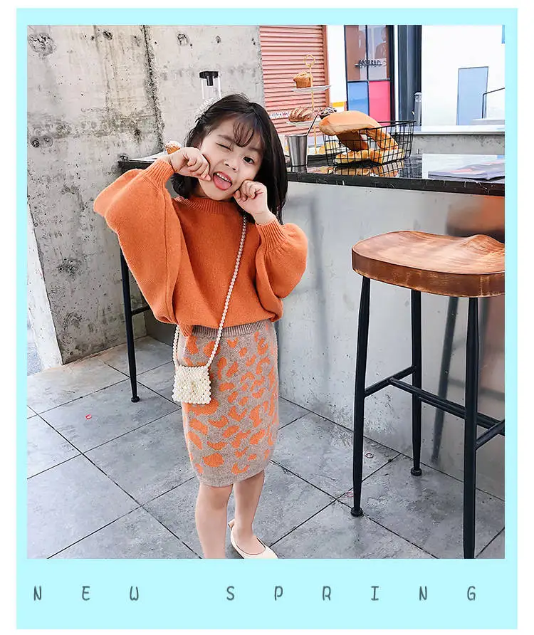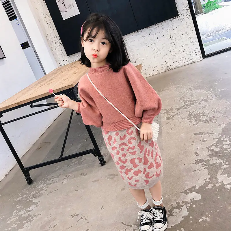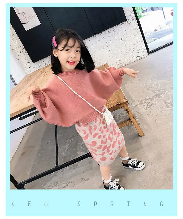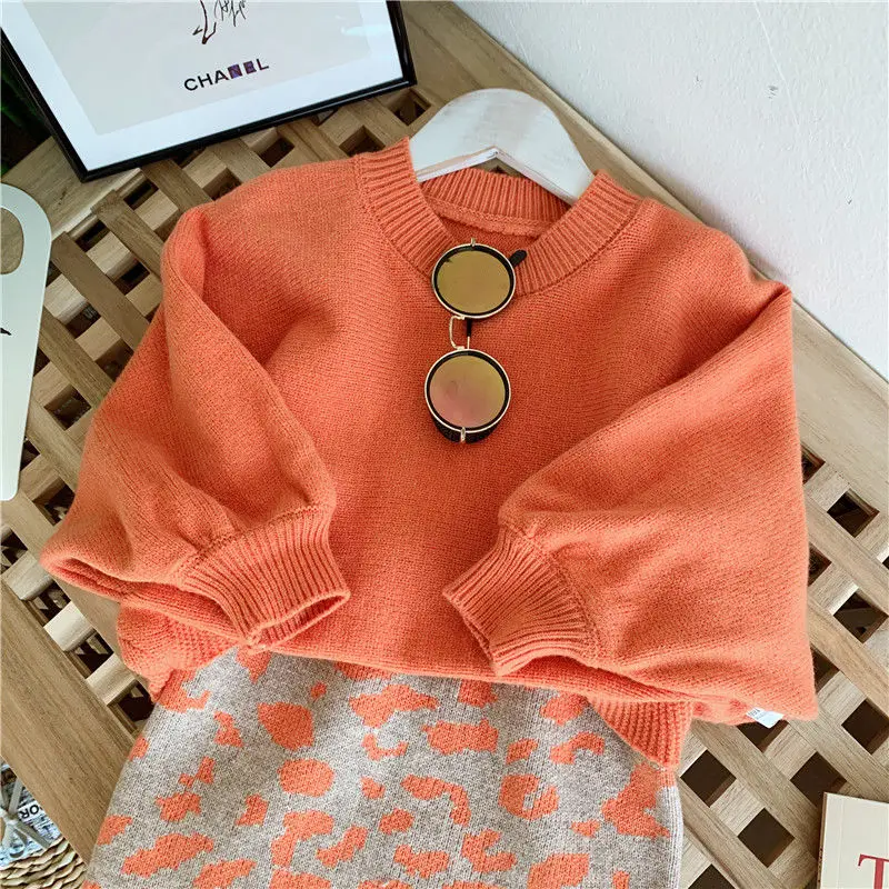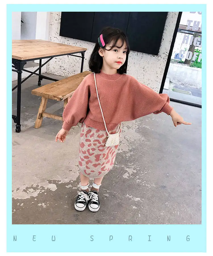 2021 Модный комплект одежды для маленьких девочек, вязаный свитер + юбка с леопардовым принтом, Детские осенне-зимние свитера, костюмы, детская одежда