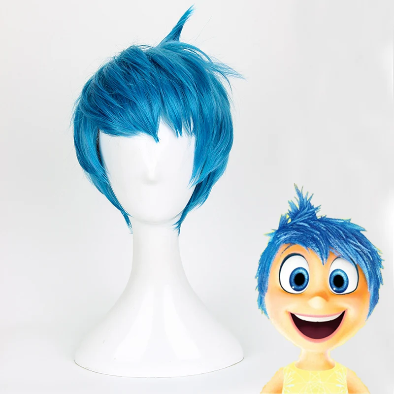 Парик «радость» из фильма «наизнанку», короткие синие термостойкие волосы, парики для косплея + шапочка для парика