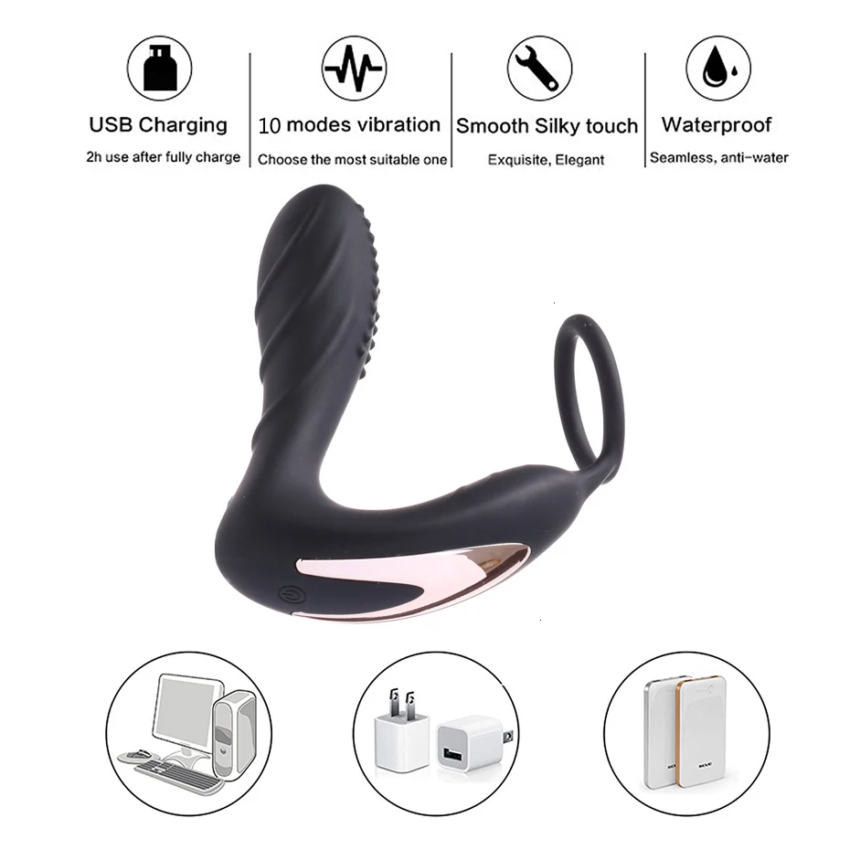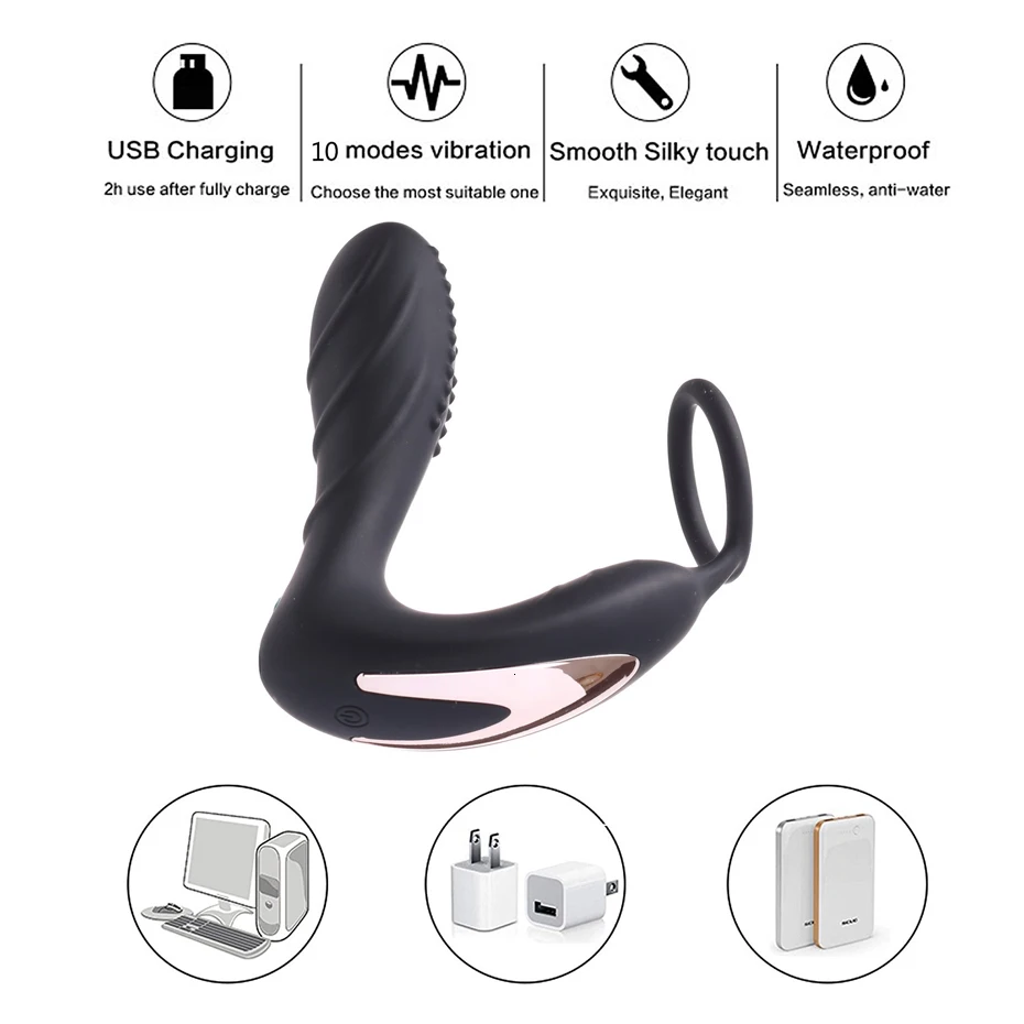 Массажер простаты Мужской силиконовый, 10 скоростей, беспроводной п...
