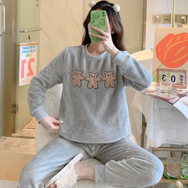 Пижама женская зимние теплые комплекты женские пижамы фланелевая одежда для сна пижамы Mujer Новая Домашняя одежда 2020 Прямая поставка
