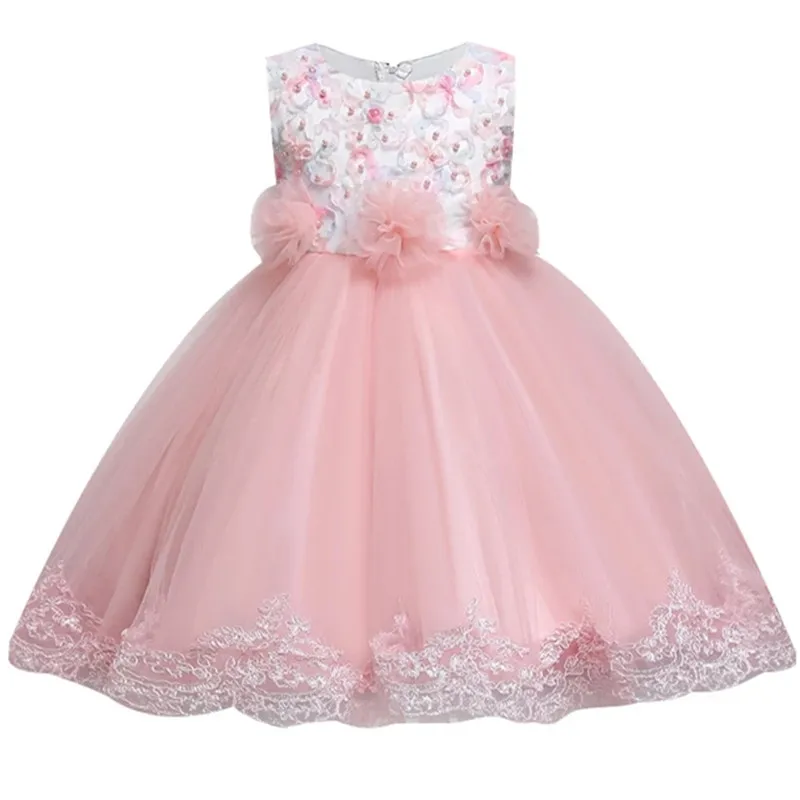 Платье для маленьких девочек, кружевные платья принцессы с аппликацией для девочек, вечерние платья на свадьбу, одежда для малышей