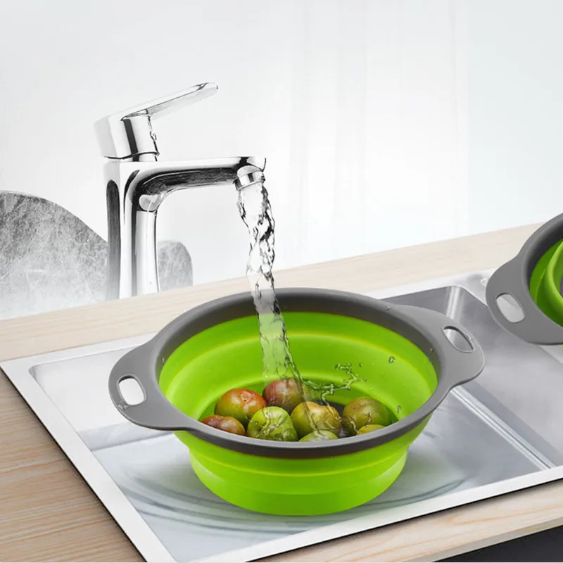 2 шт.компл. Складная сливная корзина для мытья фруктов и овощей, кухонные органайзеры, силиконовый дуршлаг, портативные складные корзины для хранения