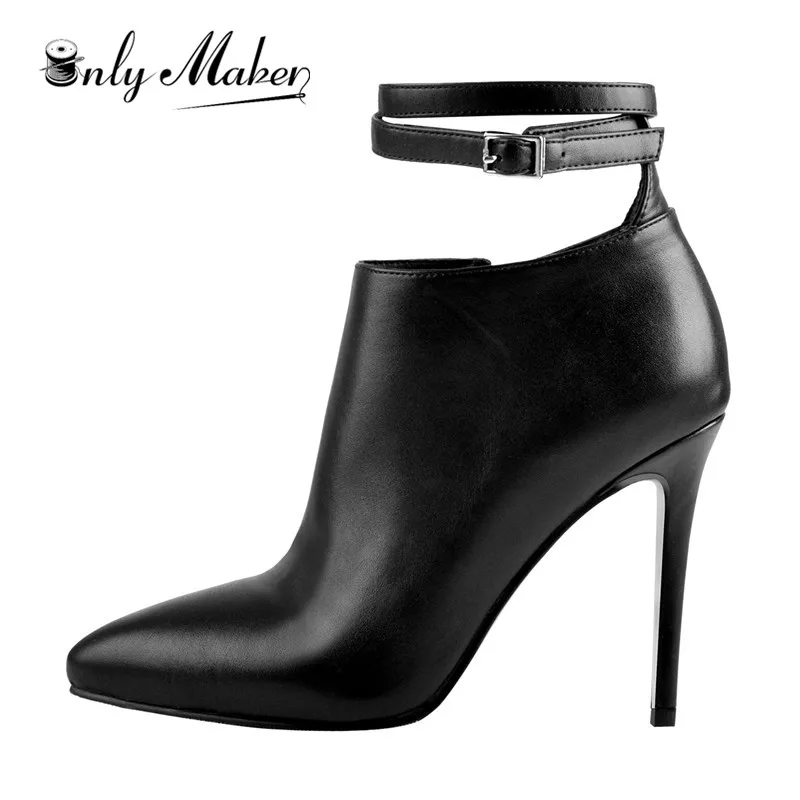Женские Ботинки на каблуке Onlymaker 10 см с ремешком на щиколотке и заостренным носком, матовые ботинки из лакированной кожи с боковой молнией, быстрая обувь 5 US15