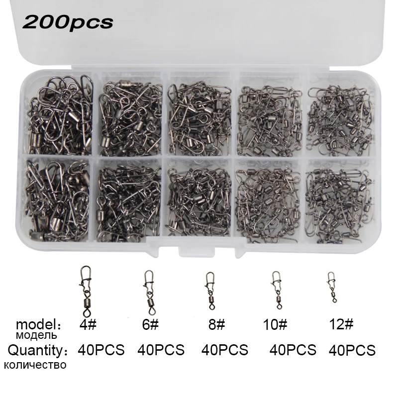 200 шт.компл. рыболовные Вертлюги с соединителем, блокировочная защелка, 4 #-12 # вертлюг с качения для рыболовного крючка, приманки, рыболовные аксессуары A054