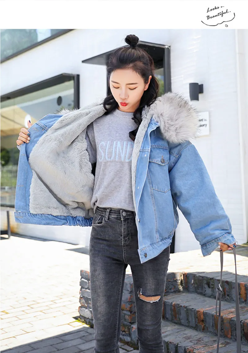 2022 Куртка женская теплая женская зимняя мотоциклетная бархатная куртка женская джинсовая куртка Женское пальто синие джинсовые куртки женская модель