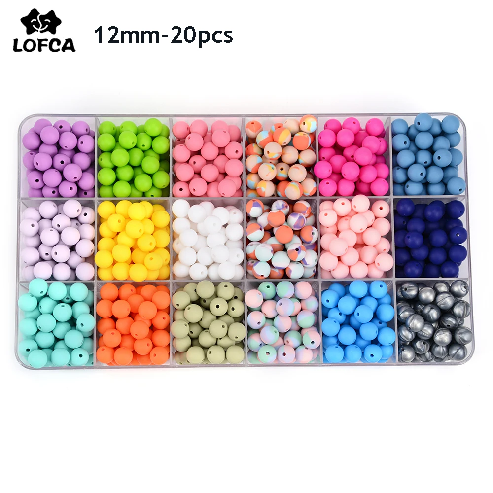 LOFCA 12 мм 20 шт.лот, силиконовые круглые бусины, пищевой класс, не содержит Бисфенол А, силиконовые бусины для прорезывания зубов, Детские Жевательные бусины для прорезывания зубов, игрушки для сделай сам