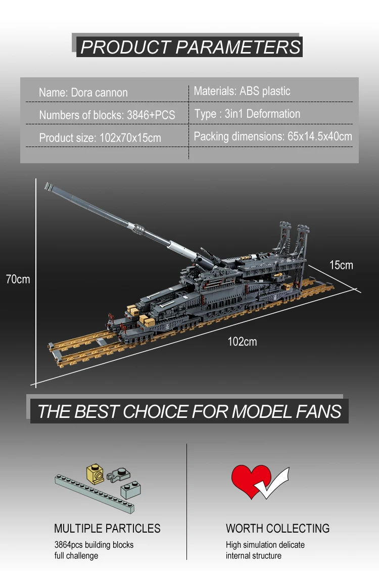 3846 шт. строительные блоки Германия 80 см KE железнодорожное орудие Dora военное оружие танки техническая серия детские игрушки для мальчиков кирпичи подарки