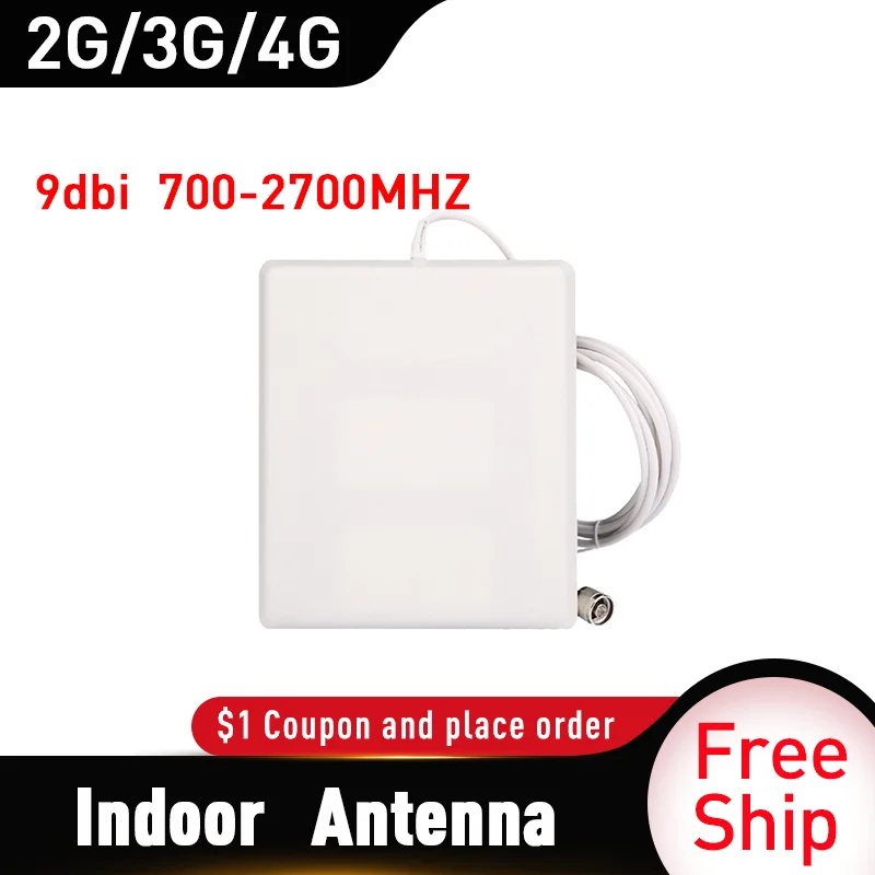 Это панельная антенна, коэффициент усиления 9 дБи. С 2-метровым кабелем, подходит для усилителей сигнала 700-2700 МГц.