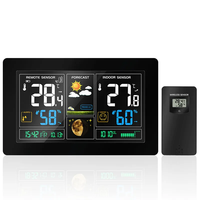Беспроводная метеостанция настенный цифровой будильник барометр термометр датчик гигрометра прогноз цветной ЖК-дисплей