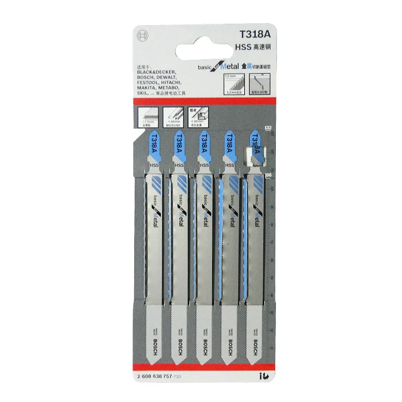 Изогнутые сверхдлинные лобзиковые лезвия T318A HCS для резки металла, длина 132 мм, 5 шт.