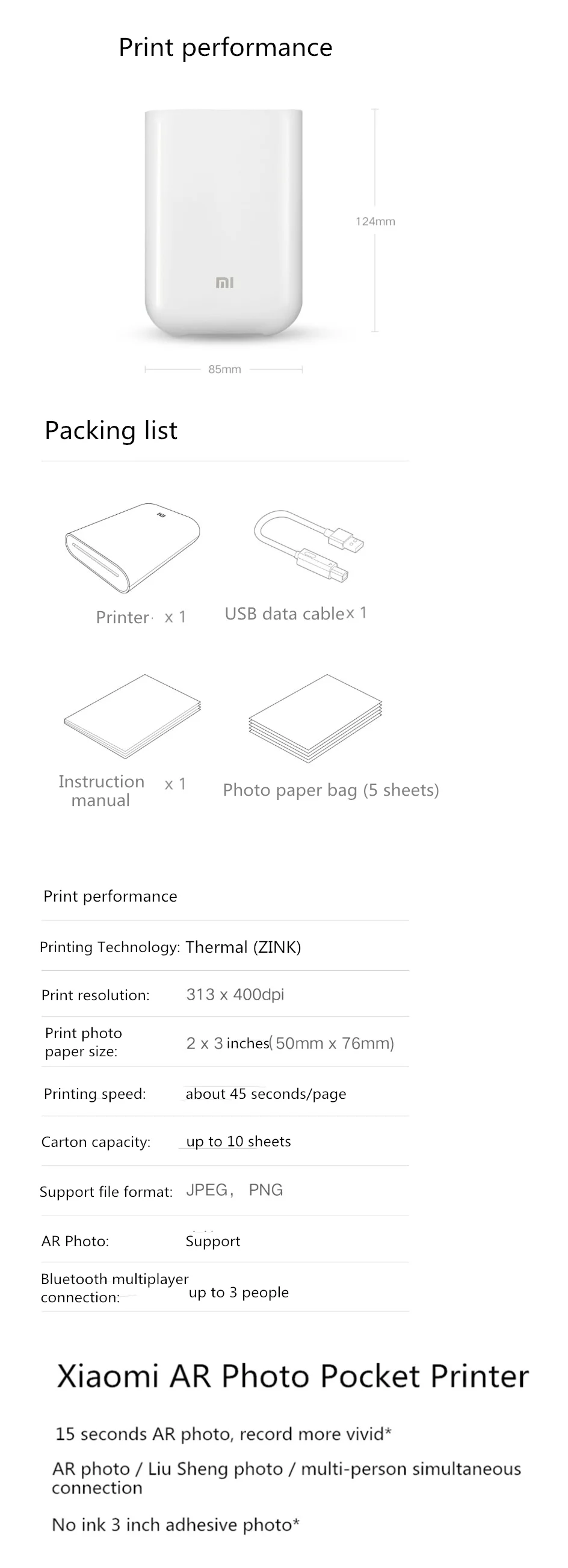 Xiaomi mijia AR принтер 300 точекдюйм портативный фото мини карман ...