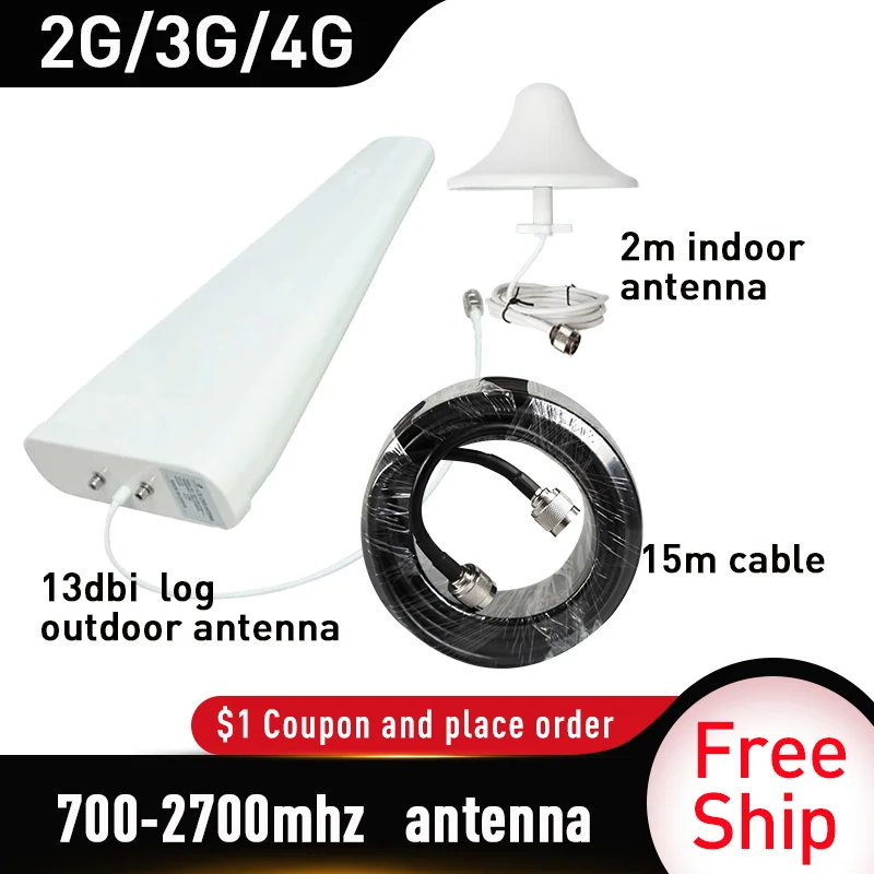 Антенна 2G 3G 4G 700 ~ 2700 МГц 13 дБи наружная антенна потолочная комнатная антенна 15 метров аксессуары для кабеля для усилителя мобильного сигнала В комплект входит: 1. Наружная логарифмическая антенна 13 дБи 2 .. Внутренняя всенаправленная антенна 5 дБи 3. Кабель 15 метров