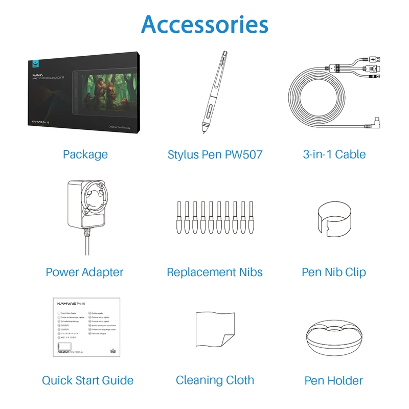 Графический планшет HUION Kamvas Pro 16, 15,6 дюйма, 266PPS, 8192 уровня давления, быстрые клавиши