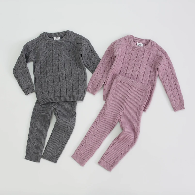 Комплект одежды для мальчиков и девочек 0-4 лет, осенне-зимние удобные вязаные пуловеры, свитер и штаны, костюм для маленьких девочек, детская одежда