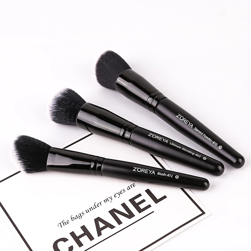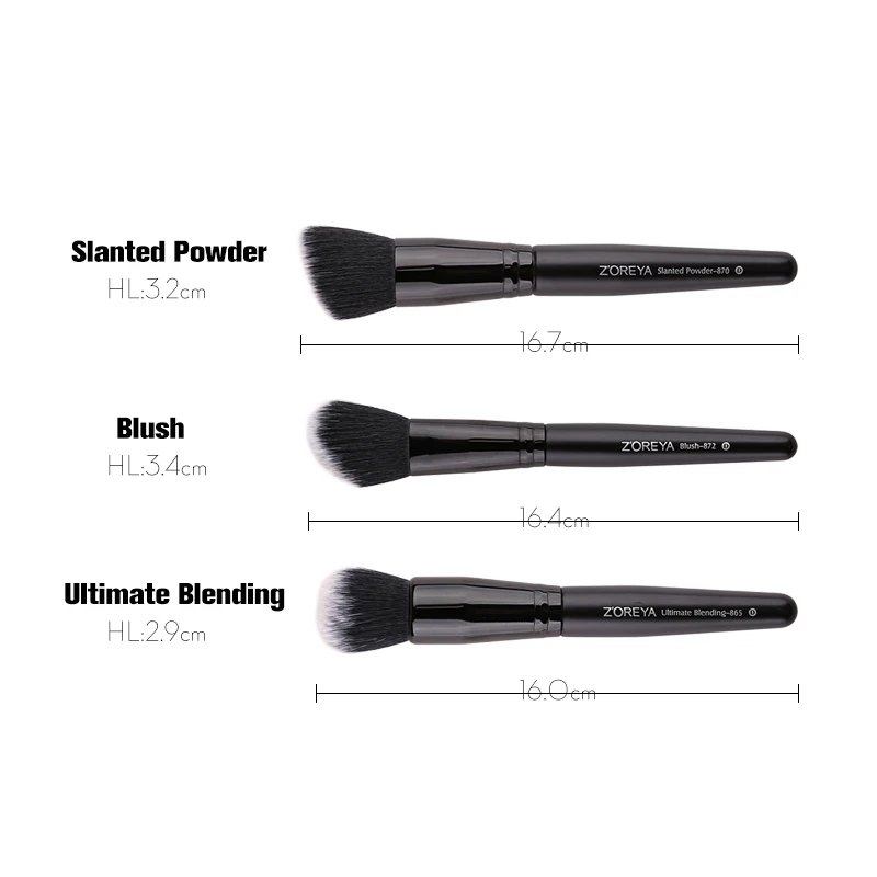 ZOREYA 3Pcs Class Black Makeup Brushes Super Soft Face Make Up Brush Set Blush Slanted Powder Ultimate Blending Beauty Tool