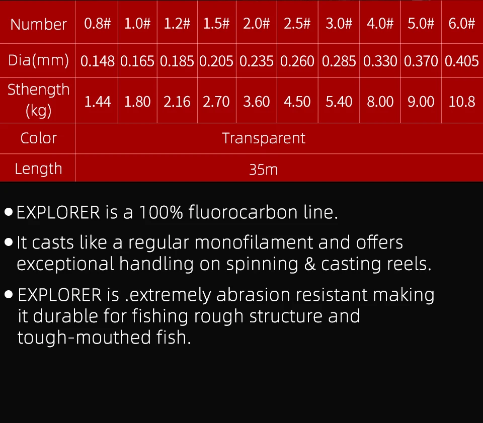 Фторуглеродная рыболовная леска TSURINOYA EXPLORER, рыболовная леска 35 м, высокопрочная, быстро Тонущая, невидимая, для ловли карпа