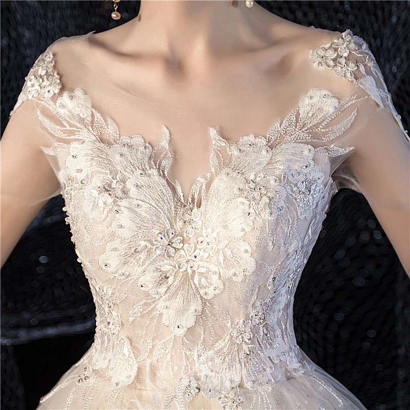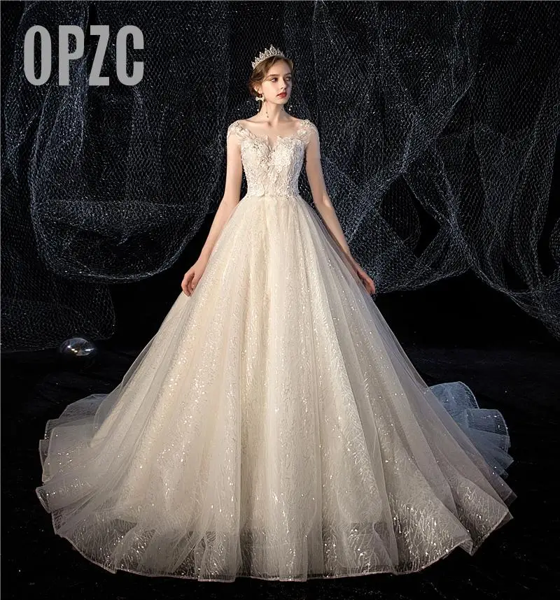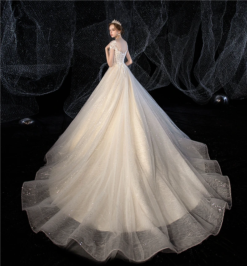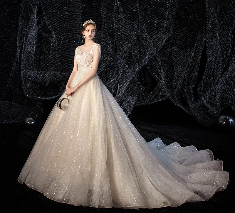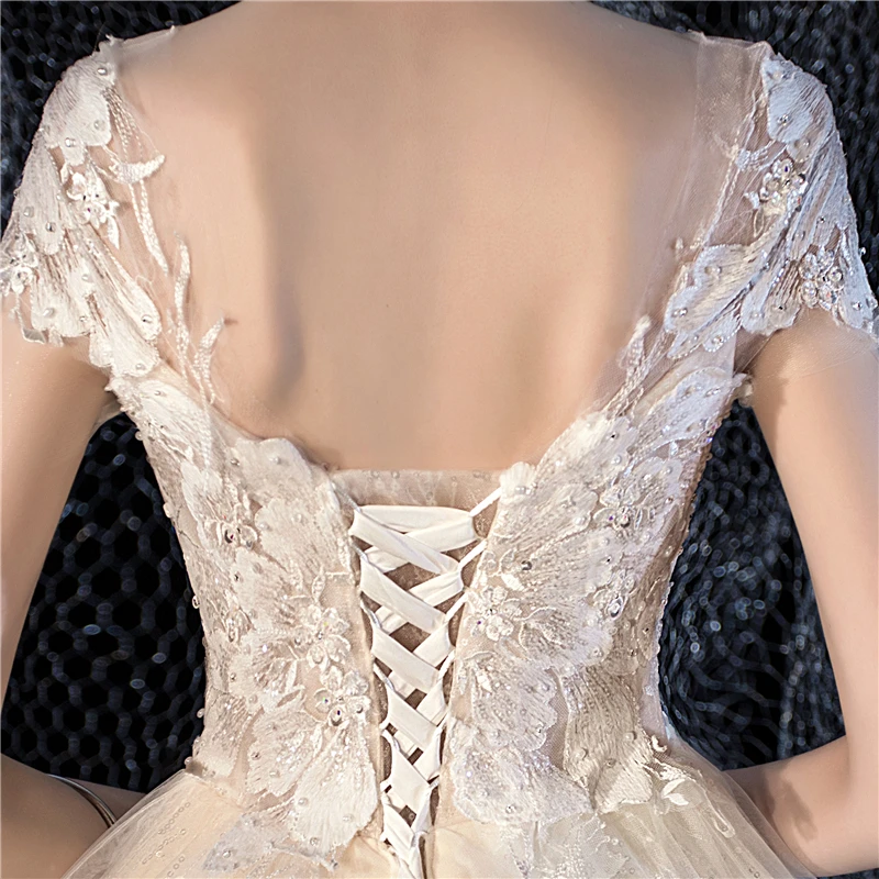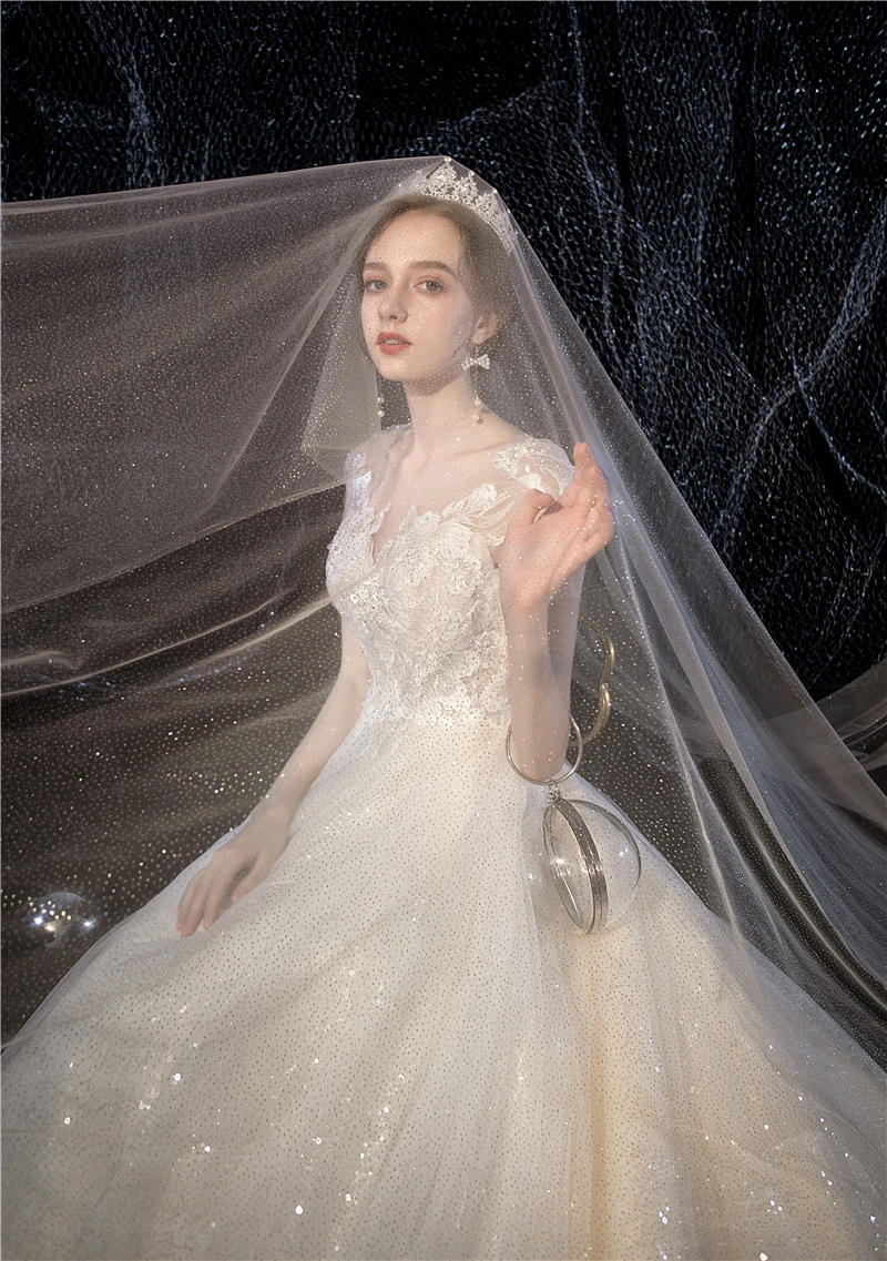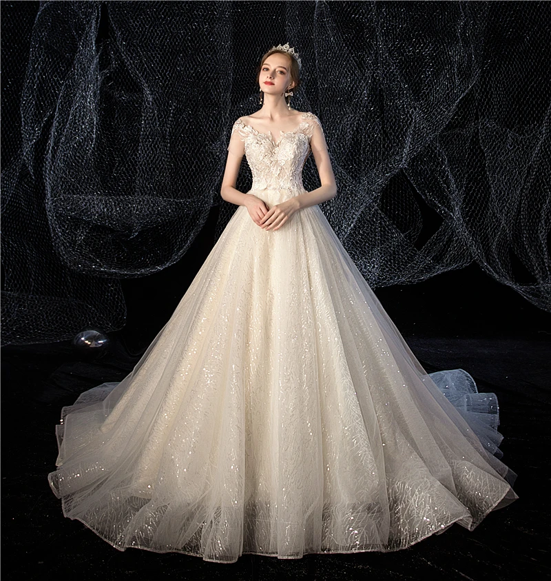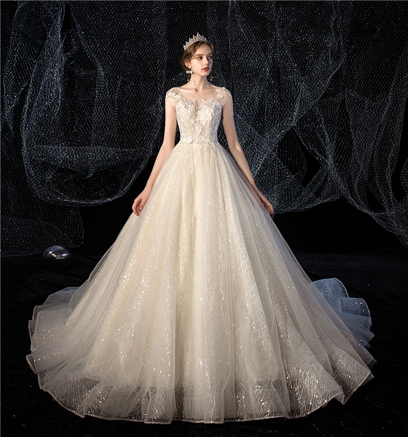 Женское свадебное платье It's yiiya, белое кружевное платье с блестками и круглым вырезом на лето 2019