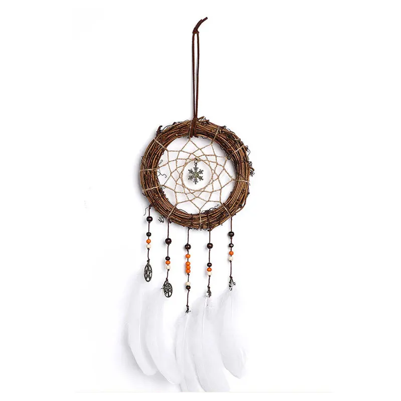 Украшение Ловец снов настенное, плетеное, с перьями, ручной работы, 2022