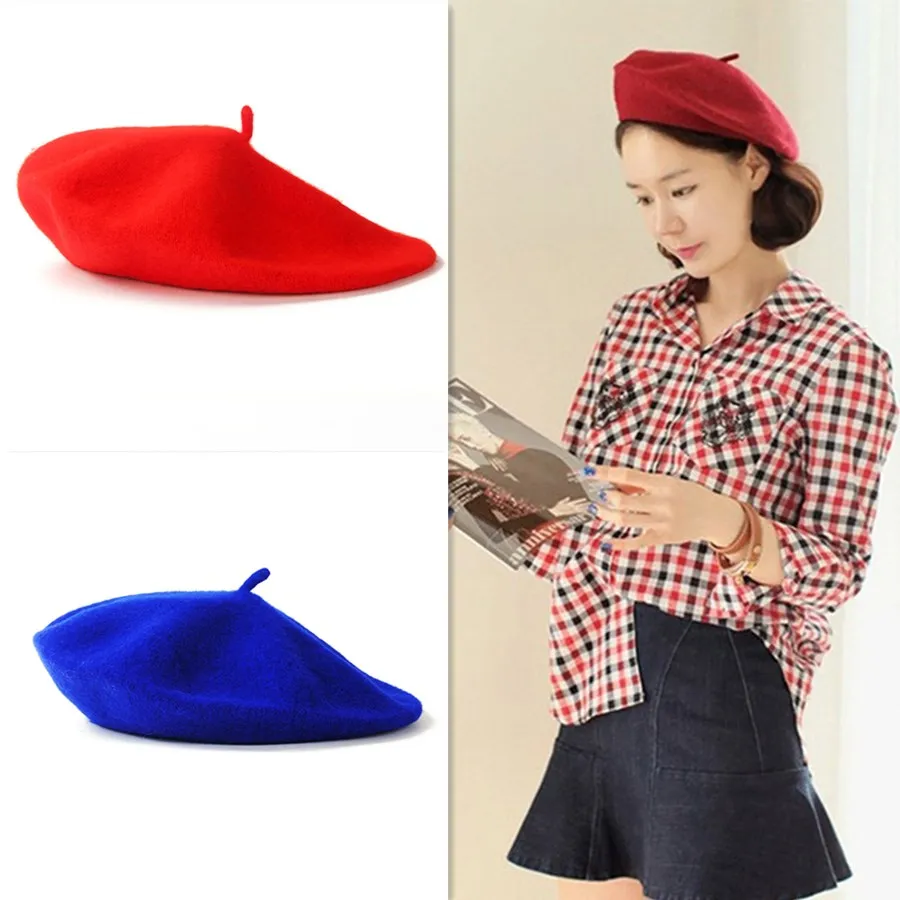 Женские шерстяные береты, зимние шапки, однотонный берет, женская ш...