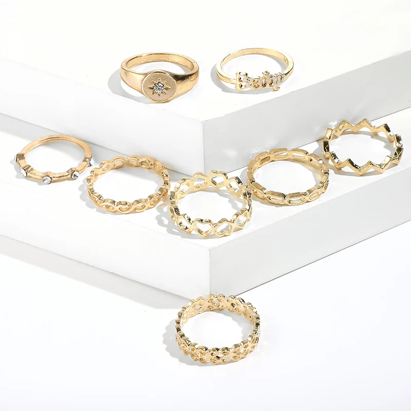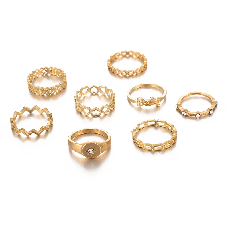 Docona 8 шт.компл. женские модные кольца для женщин винтажные буквы...