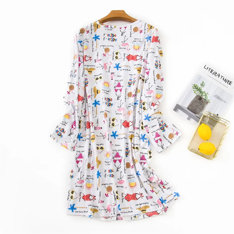 Женская домашняя одежда из чистого хлопка, милая пижама с длинным рукавом, большого размера, для отдыха, с мультяшным принтом, для весны и осени
