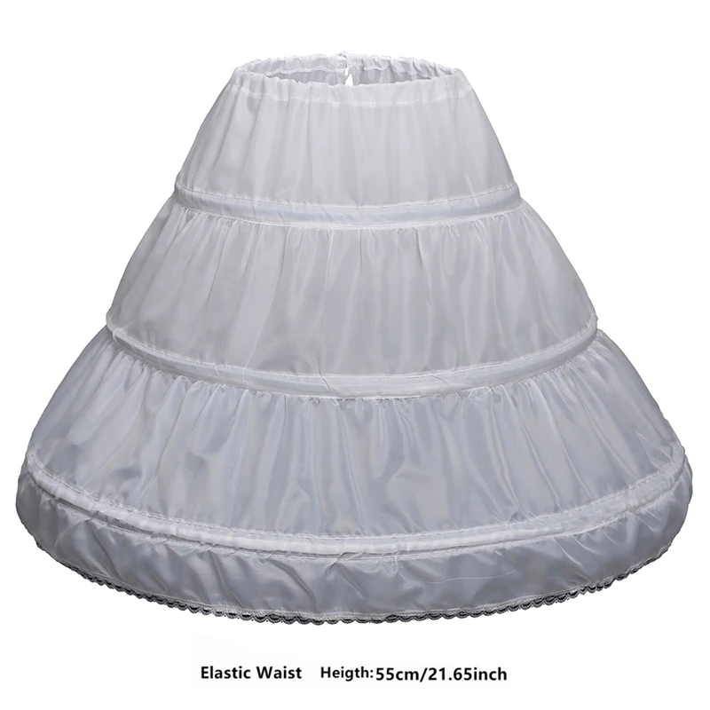 Детская нижняя юбка трапециевидной формы, 3 обруча, однослойное кружевное платье с кружевом и цветочной отделкой для девочек, Нижняя юбка с эластичной резинкой на талии, От 6 до 14 лет девочек