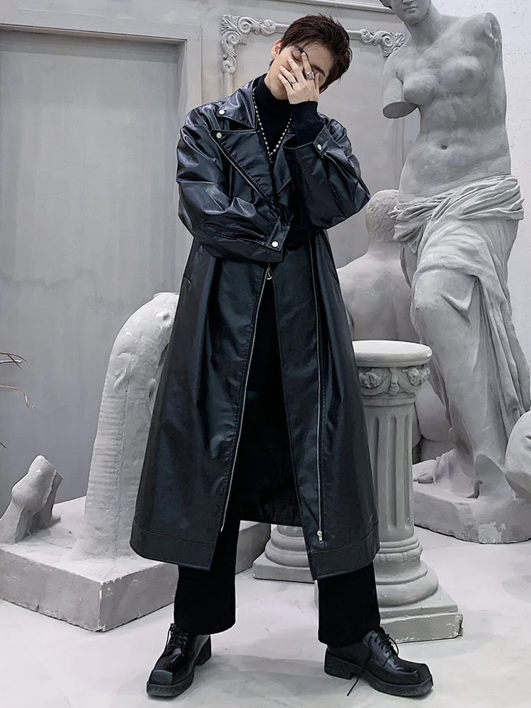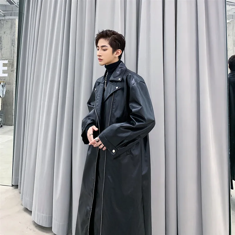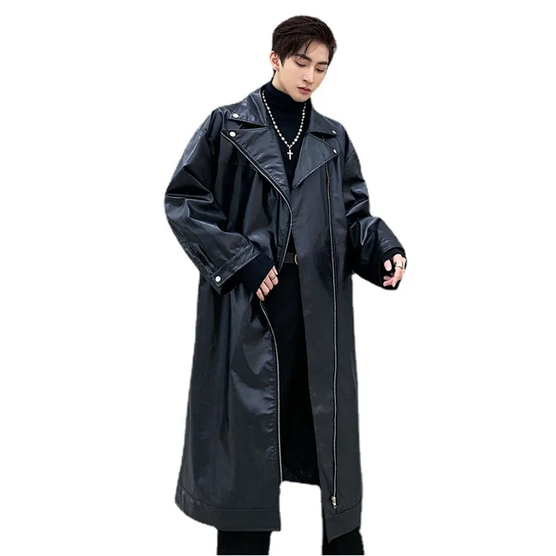 Тренч мужской кожаный свободного покроя, мотоциклетная куртка, ветровка, уличная одежда в стиле хип-хоп, стильное кожаное пальто в готическом стиле