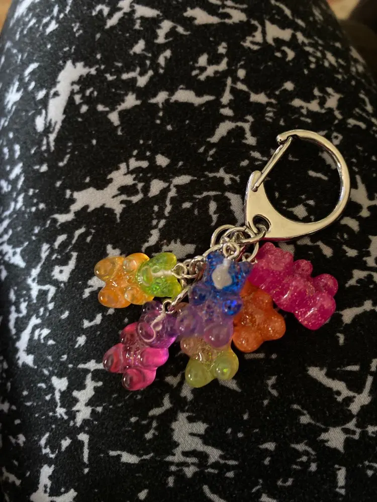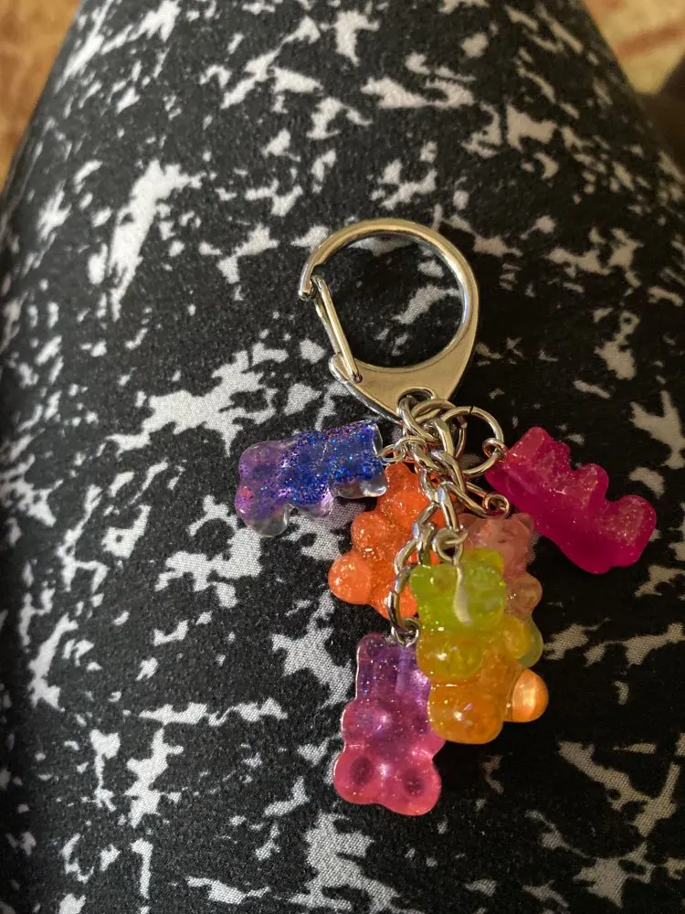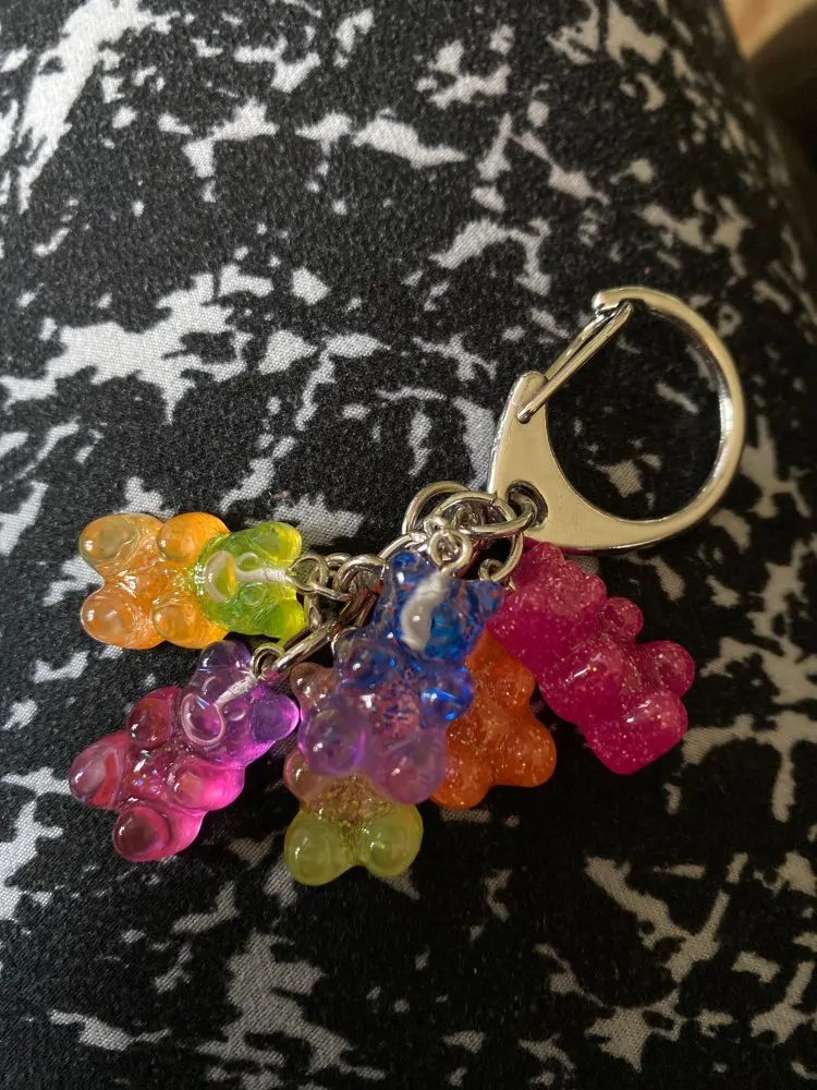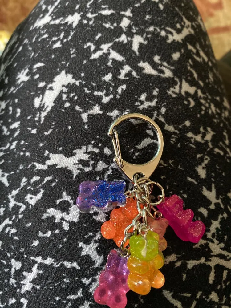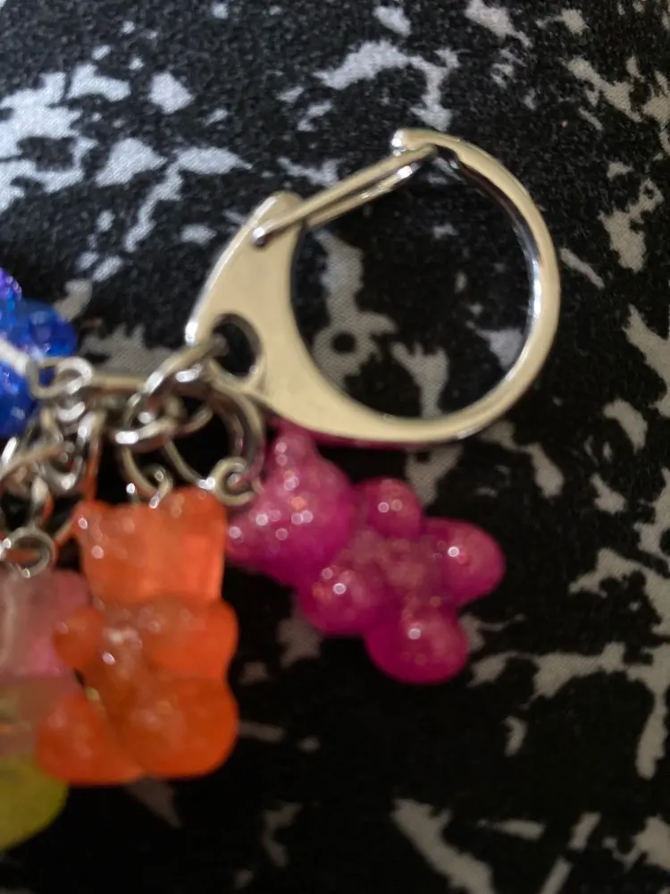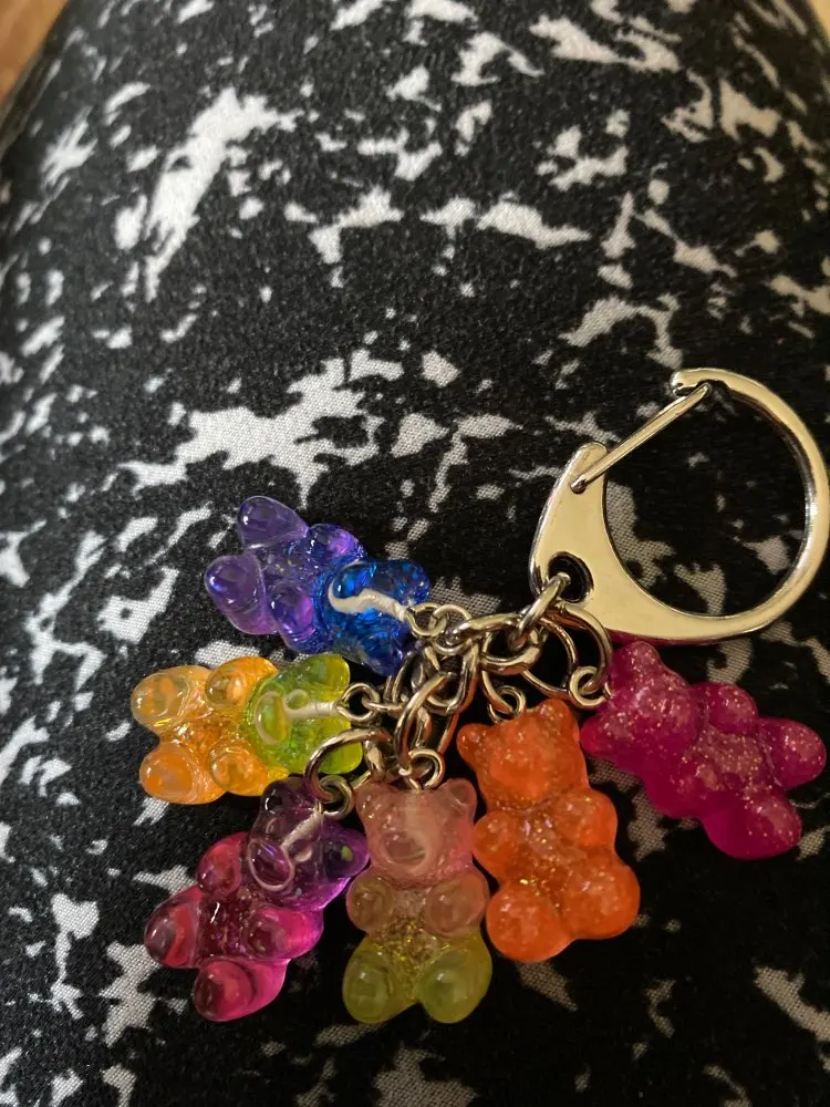 Есть 9 / 10 цветовых комбинаций. Цвета иногда переворачиваются. Металлический штифт иногда очень заметен, особенно с задней стороны. Есть все 32 шт. Они не тяжелые, довольно легкие, подходят для сережек. Размер настоящих мишек Гамми.