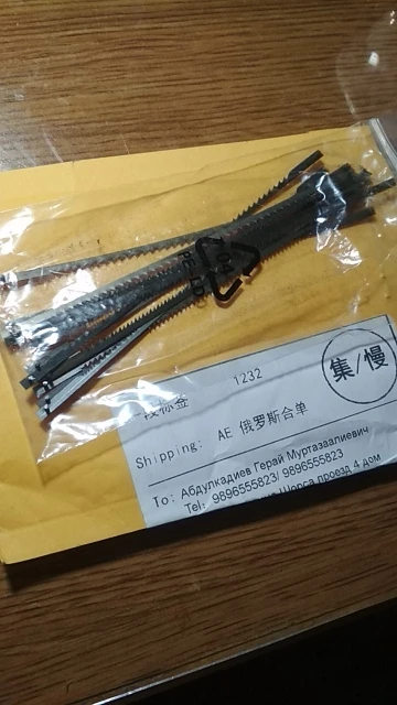 Посылка пришла за 20 дней, довольно быстро. Трек в пути отслеживался до границы, по России как-то сразу в почтовое отделение попала. Посылка повреждений не имеет, содержимое в наличии и в целостности. Пилки, как на рисунке, все разные. Разное количество зубов, их высота, форма. приобретением доволен. Рекомендую. Продавцу спасибо.