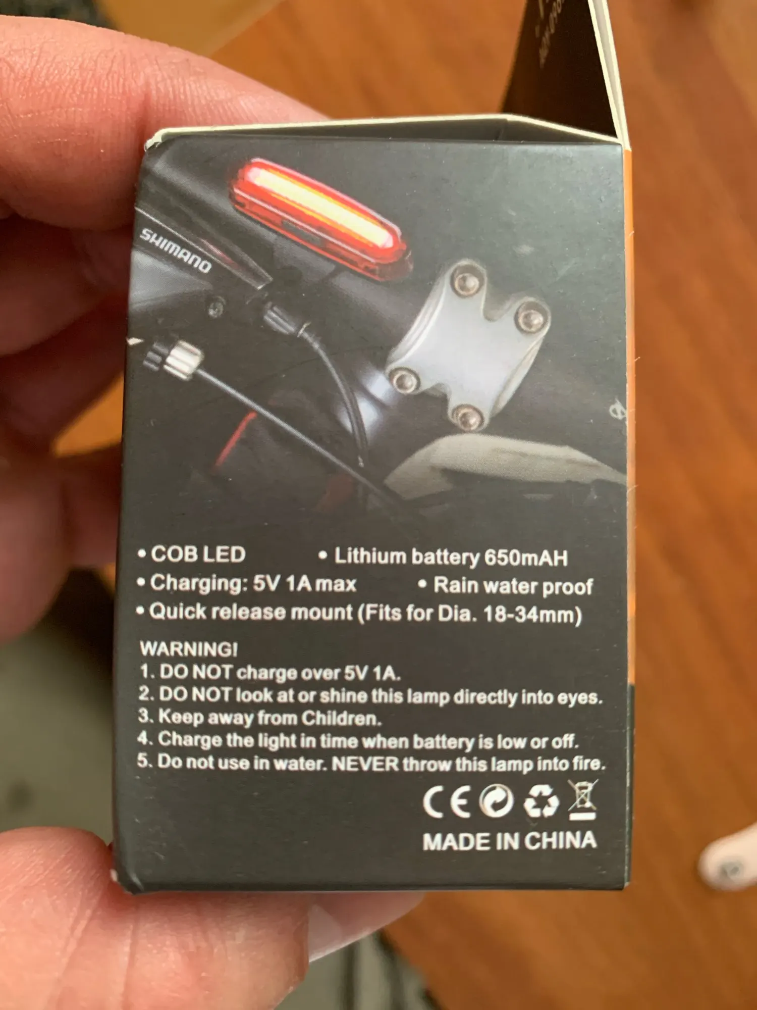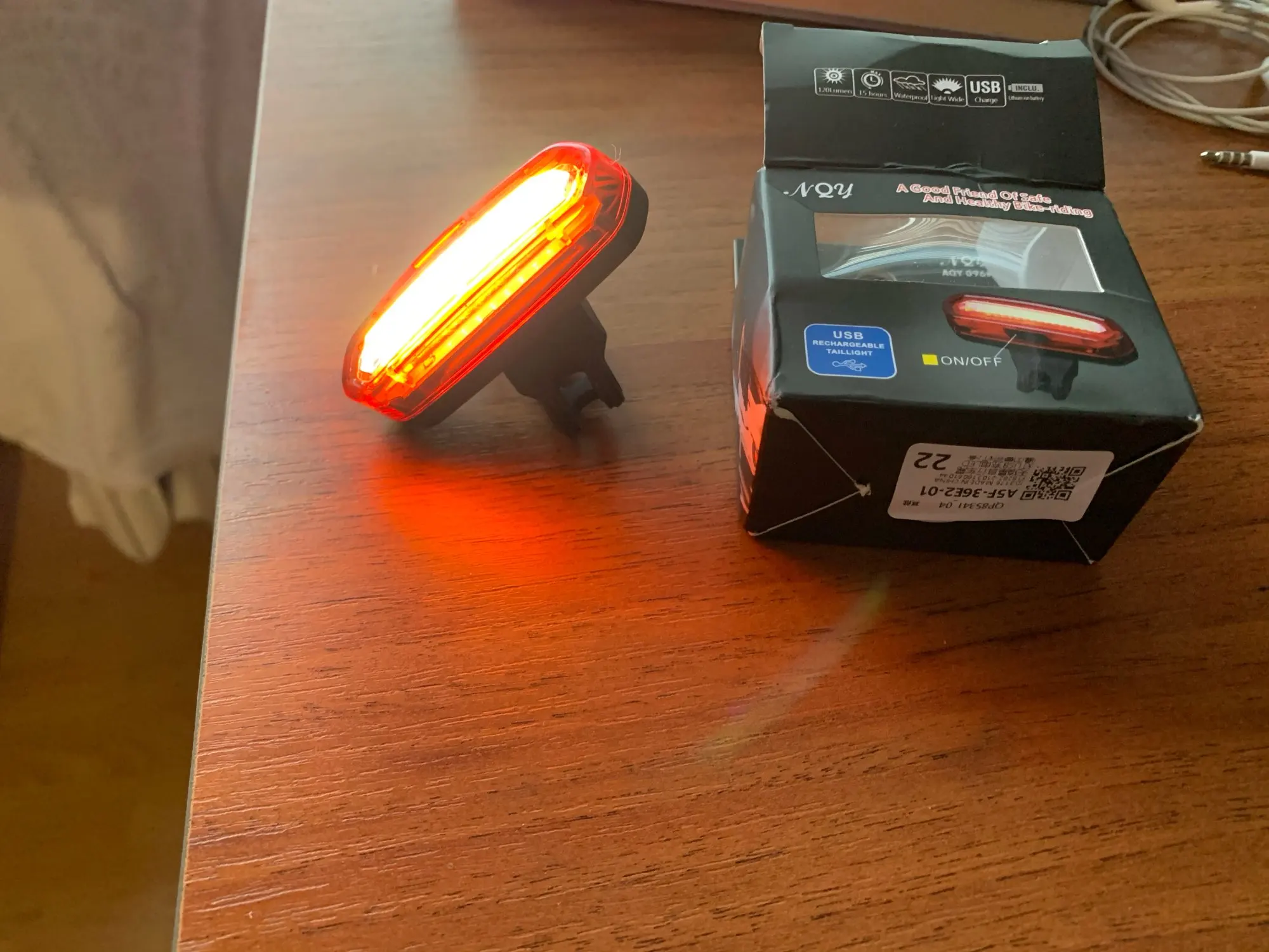 Освещение, как и ожидалось, в комплект входит usb-кабель. Работает около 10 часов в режиме мигания. Удобный резиновый зажим для крепления к каркасу сиденья. Измеренная емкость аккумулятора около 500 мА · ч (с помощью инструмента FNB48). Рекомендуем!