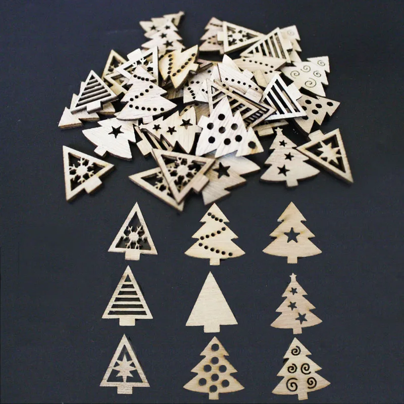 Декоративные деревянные снежинки, 50 шт., для рождественской елки, скрапбукинга